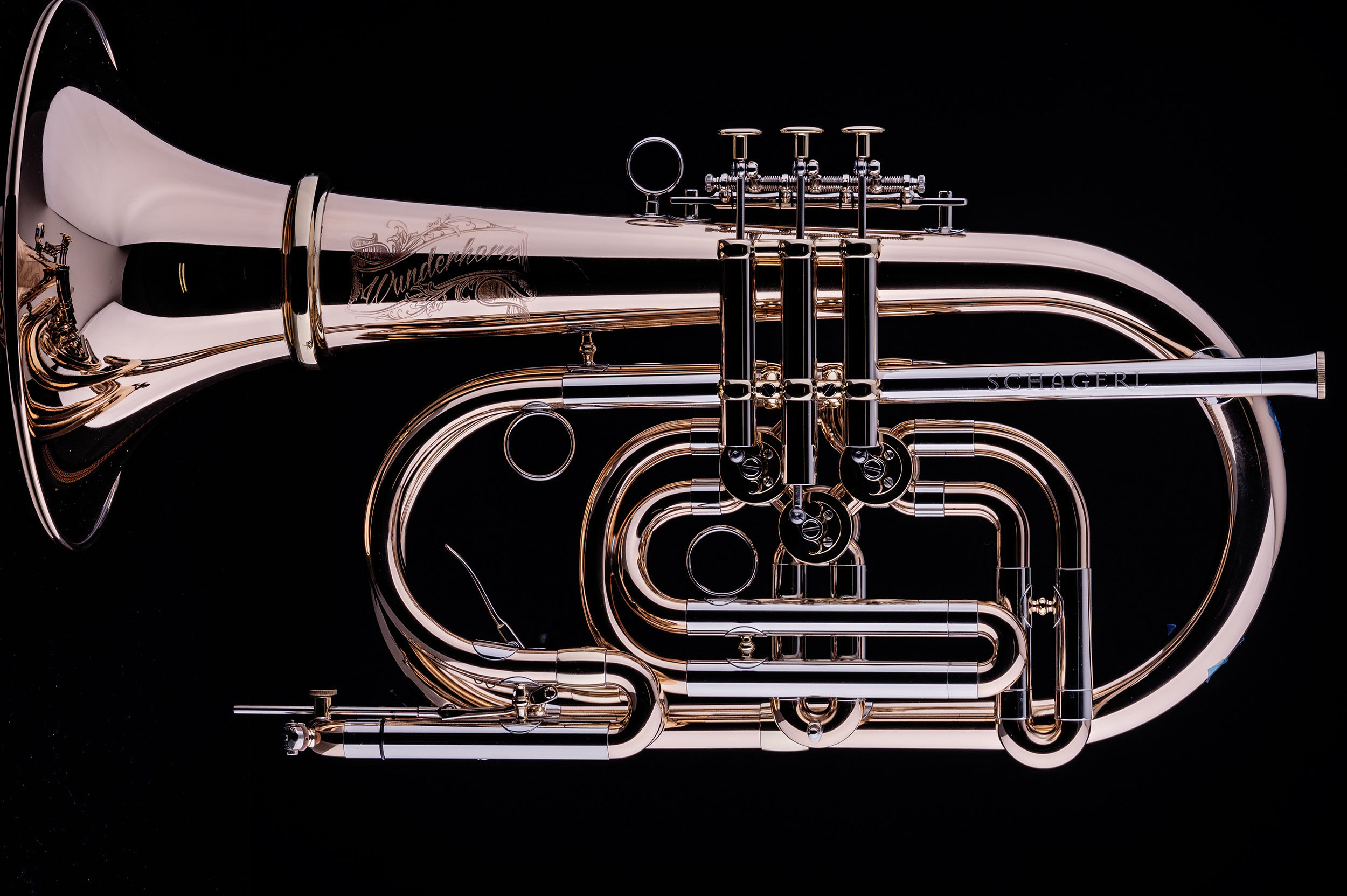 Das Basstrompeten-Modell WUNDERHORN wurde gemeinsam mit Leonhard Paul von der berühmten Brassgruppe Mnozil Brass entwickelt und gestaltet. Dieses Modell verkörpert höchste Qualität und musikalische Exzellenz.