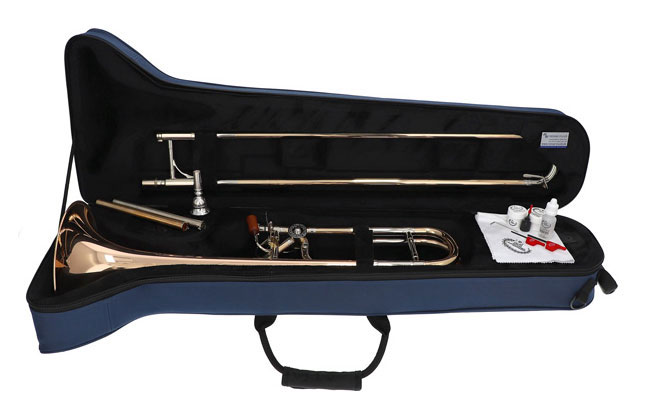 Tune Bb/F Bell 230 mm / 9.055" / red brass F-Valve with 3B joint system Leadpipe exchangeable brass mouth-guards Draw hole 13.89 mm / 0.547" Outer Slides Gold brass Inner Slides Nickel silver F-Valve 14.5 mm / 0.571" Specification asymmetrical arches on the main tuning slide and the quart valve Finish lacquered Accessories Trekking case, mouthpiece and accessories