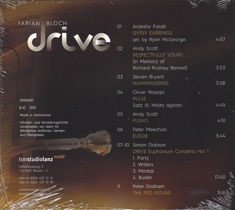 The CD contains many great new pieces for euphonium by well-known composers such as Simon Dobson UK, Andy Scott UK, Oliver Waespi CH, Pete Meechan CA...