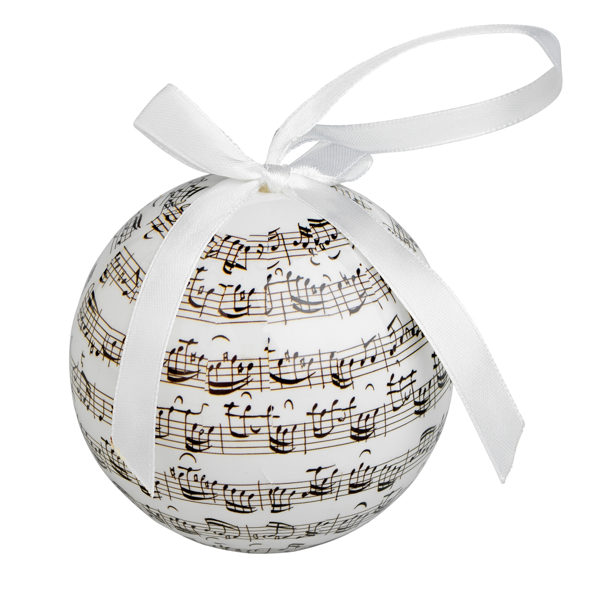 This elegant Christmas tree bauble in classic white brings musical charm to your Christmas ambience. With a diameter of 7.5 cm, it is perfect for the Christmas tree and attracts everyone s attention with its unique design: filigree staves and notes adorn the bauble and give it a festive, artistic look.