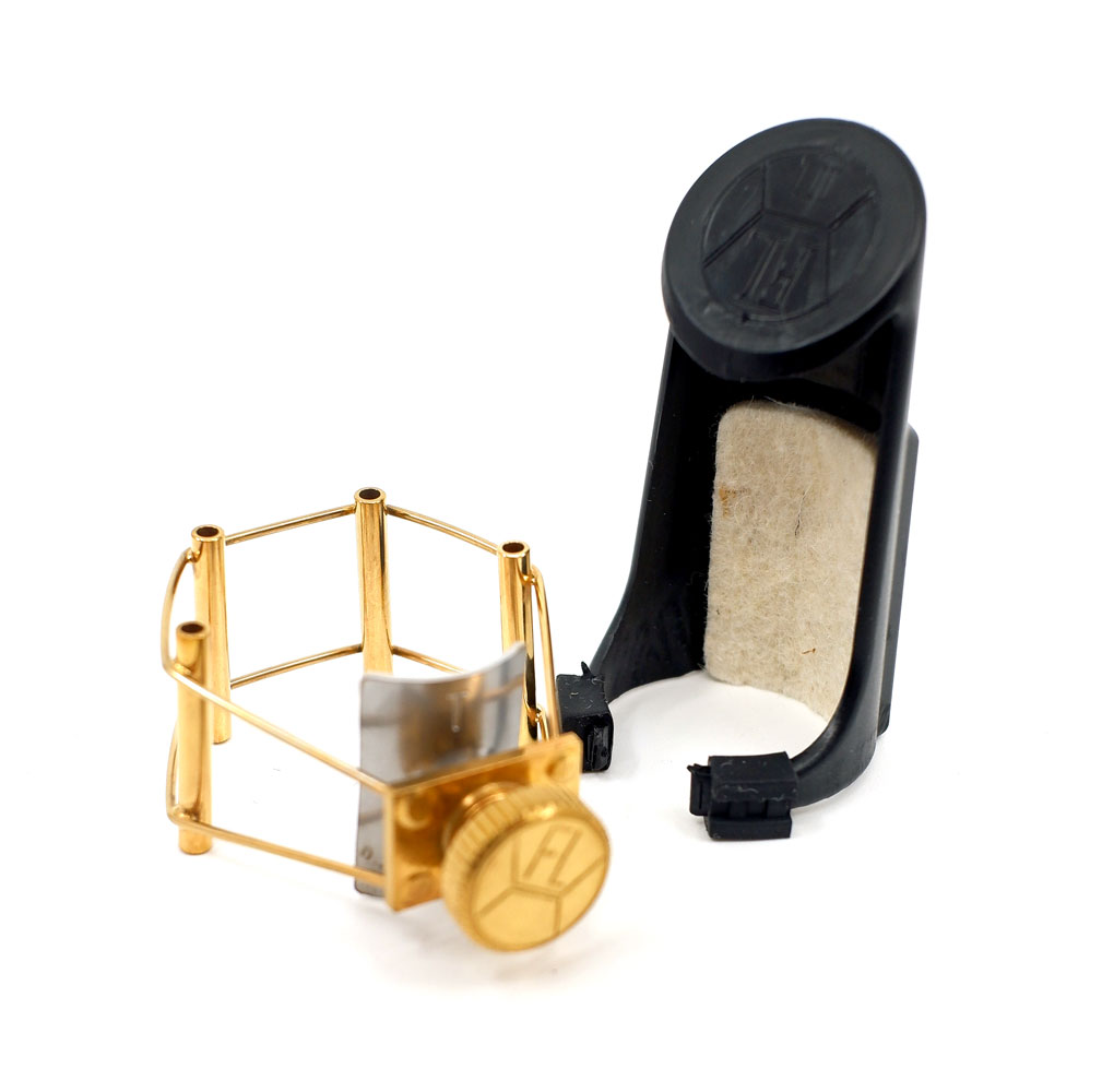 The tightening by a single central screw ensures an even distribution of the pressure on the reed and allows the reed to vibrate freely without damping the natural vibration of the mouthpiece.
