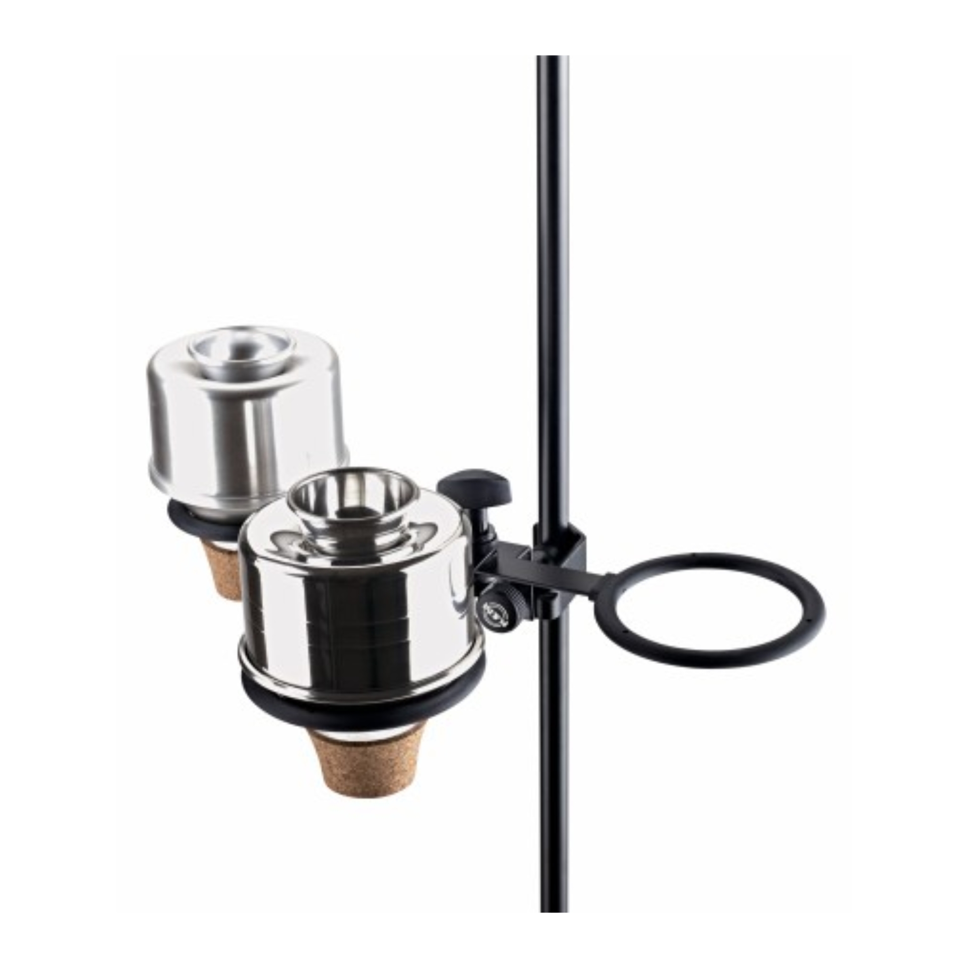 The K&M 15910 Mute Holder is a practical and flexible holder for up to 3 mutes. It clamps onto tubes with a diameter of 7 to 30 mm and is suitable for all standard mutes for trumpet, cornet, or flugelhorn. The individual holders (2 large, 1 small) are fully rubber-coated to prevent scratching of the mutes. For easy transport, the holder can be quickly and simply folded.