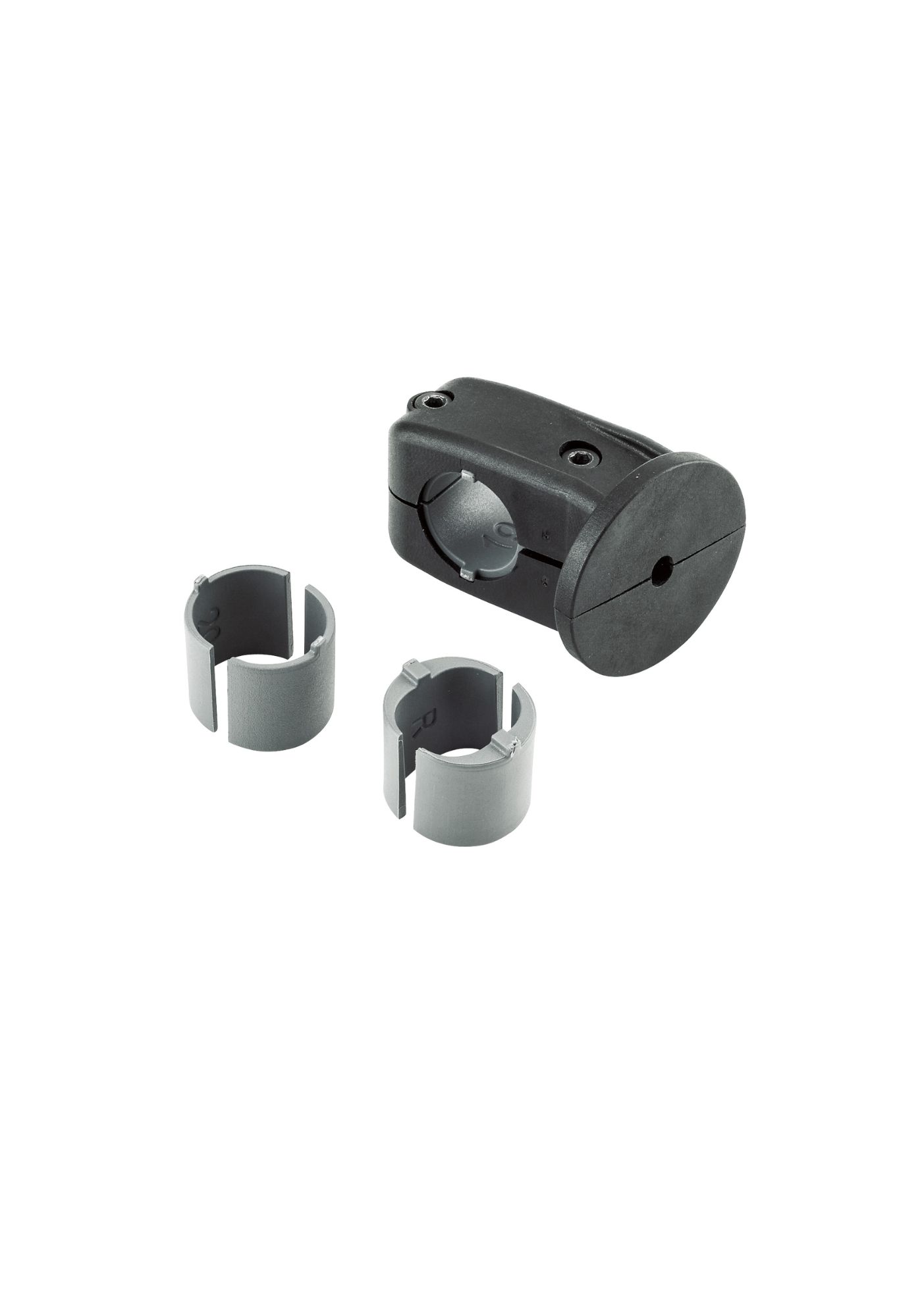 This black plastic cone holder allows for easy and secure attachment of instrument cones to compatible K&M stands. It includes three adapter sleeves (ø 19 mm, ø 20 mm, and oval tube) for versatile use. Perfect for use with various instrument cones to provide a stable and safe storage solution for wind instruments.