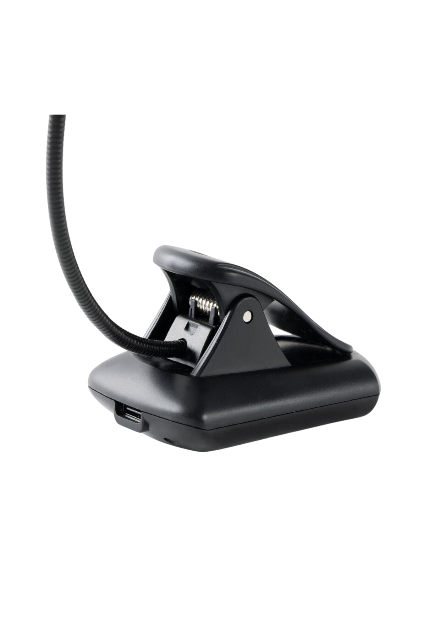 The powerful T-Model LED light with rechargeable battery charging function provides optimal light thanks to its 8 super-bright LEDs. The brightness can be switched between 2 levels. Extremely long service life of the energy-efficient LEDs of up to 100,000 hours. The light cone can be variably adjusted thanks to the flexible gooseneck. With clip (up to 25 mm) for attaching to music stands, table tops, etc. Very compact and handy. The 3.7 V/1000 mAh Li-ion battery is fully charged in 160 minutes and provides bright, pleasant light for approx. 14 hours. A USB charging cable is included in the scope of delivery.