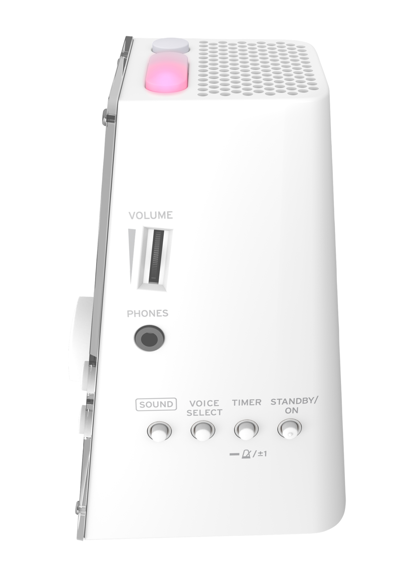 - Dynamic speaker for clear, assertive sound