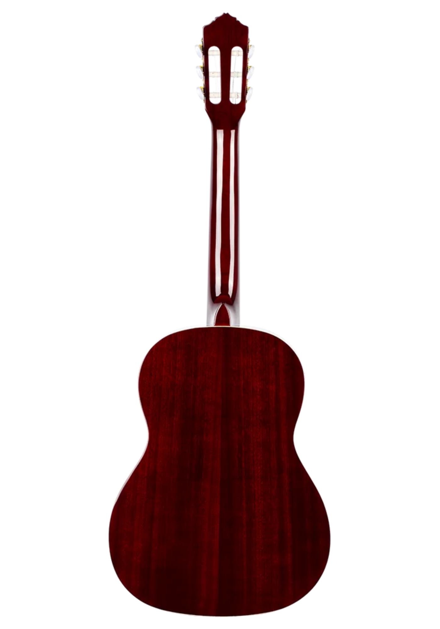 The guitar has back and sides made of high-quality mahogany, which contributes to a balanced sound. It is finished in an elegant wine red, which gives it a sophisticated look.