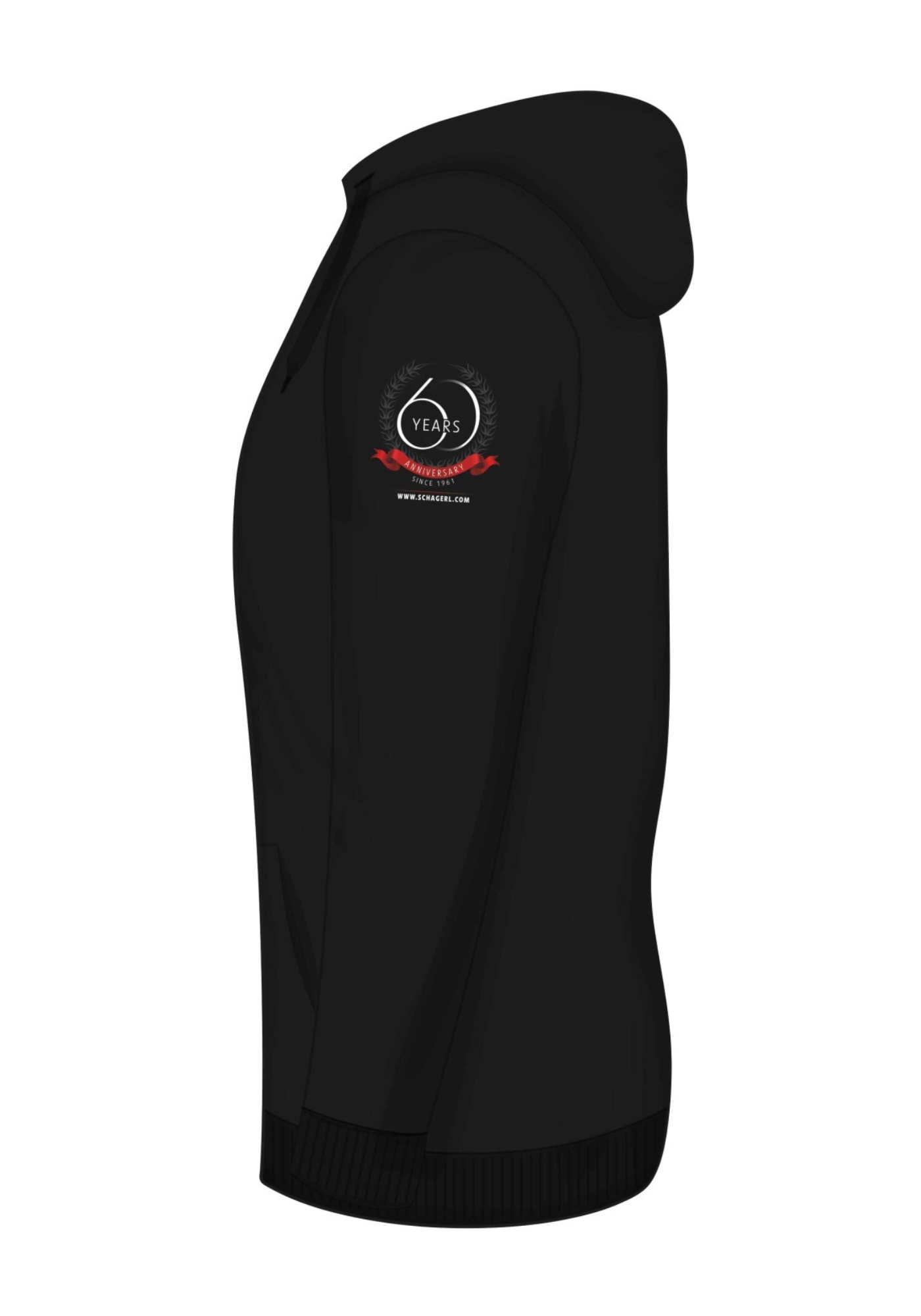 This hoodie made from 100% Fairtrade-certified organic cotton offers maximum comfort and sustainable quality. With a trumpet logo in white and red on the front and an anniversary emblem on the sleeve, it sets stylish accents. The sturdy metal zip and hood make it particularly practical. The hoodie is washable at 40 °C, suitable for tumble drying and ironing and was produced under fair working conditions. Awarded the Oeko-Tex and EU Ecolabel, it combines modern design with environmentally conscious production. The grammage is 300g/m².