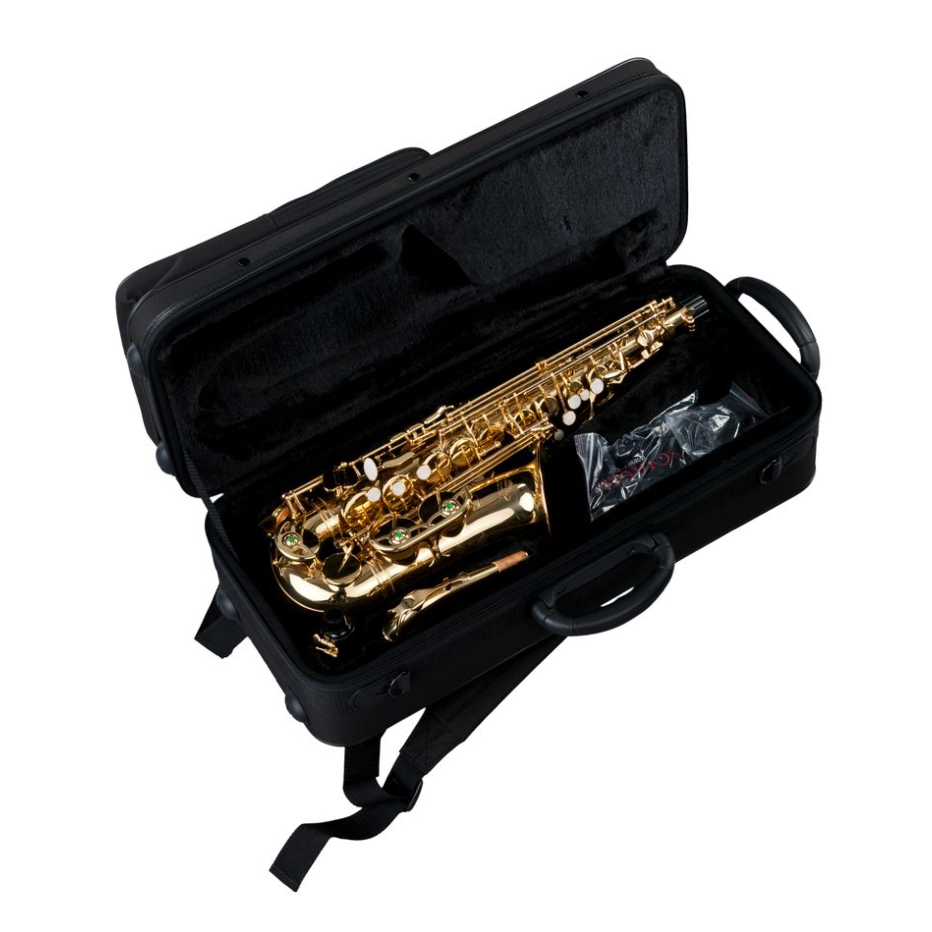 The Schagerl Academica Trekking case for alto saxophone impresses with its robust construction and is ideal for safe transport in everyday use. The case is made of tear- and water-resistant Cordura material and offers reliable protection for the instrument. Thanks to the integrated backpack straps, the alto saxophone can be carried comfortably on your back. A large music and accessory compartment provides ample storage space for sheet music, mouthpieces and other accessories. The case is black in colour and is suitable for standard alto saxophones, but is not suitable for Keilwerth saxophones.