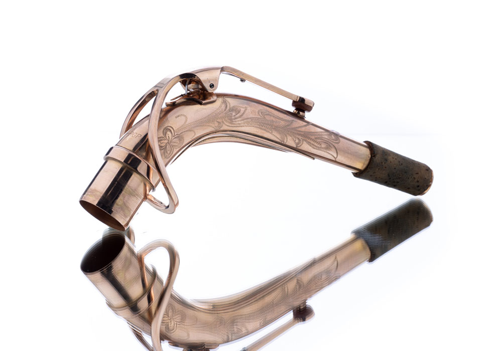 The Schagerl Amadeus S-bow made of brass with a gold-plated rose gold finish impresses with its warm and full sound. As part of the former Amadeus line—the predecessor series to the high-quality Schagerl Model 66 saxophones—it stands for quality and reliability.