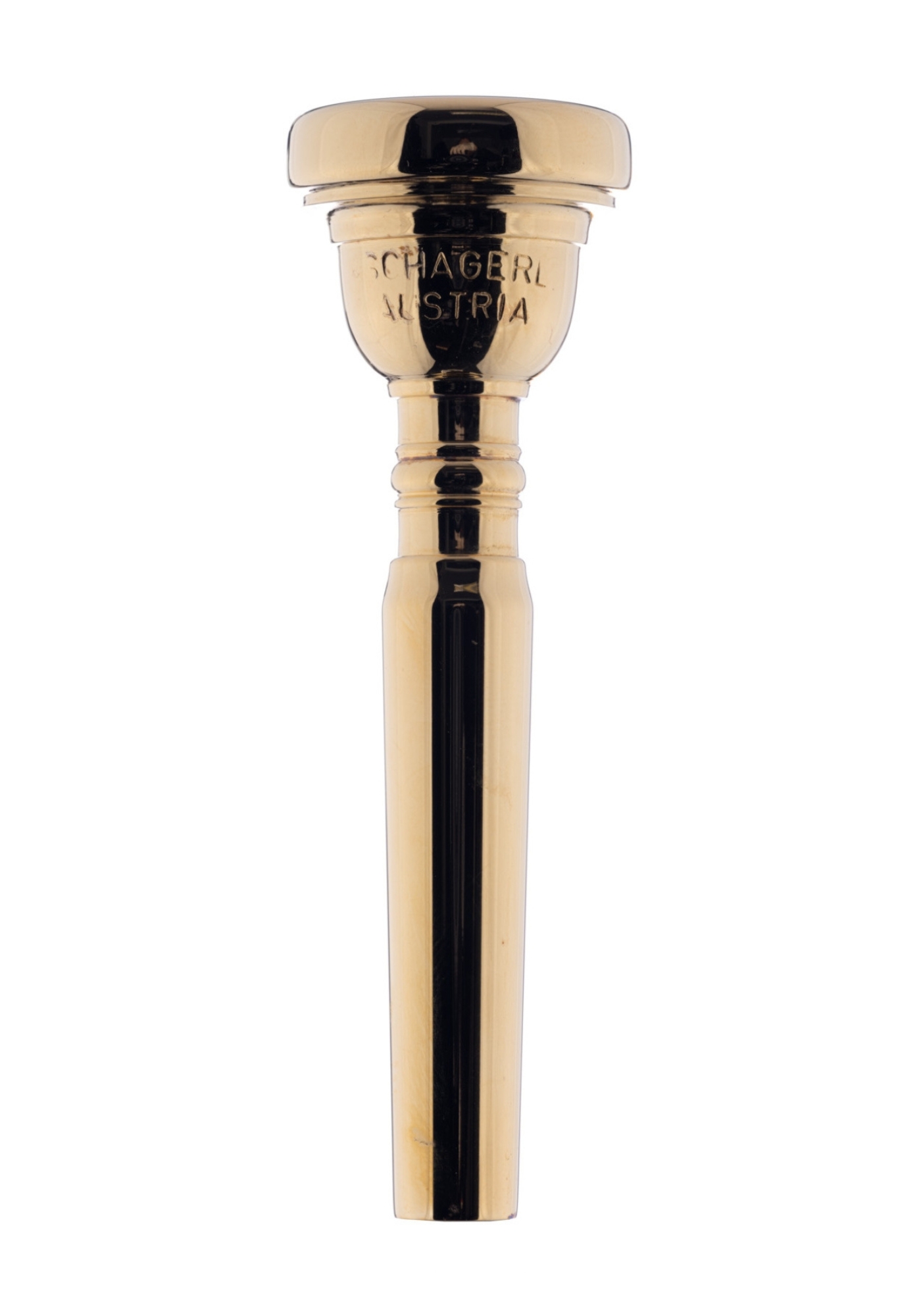 The gold-plated Schagerl-Austria trumpet mouthpiece G1 offers a room-filling sound with excellent projection. It is ideal for soloists as well as for use in orchestras and impresses with its excellent sonority and response.Cup diameter 0.669"/17 mm Cup Depth medium deep Bore 0.145"/3.7 mm Finish gold plated