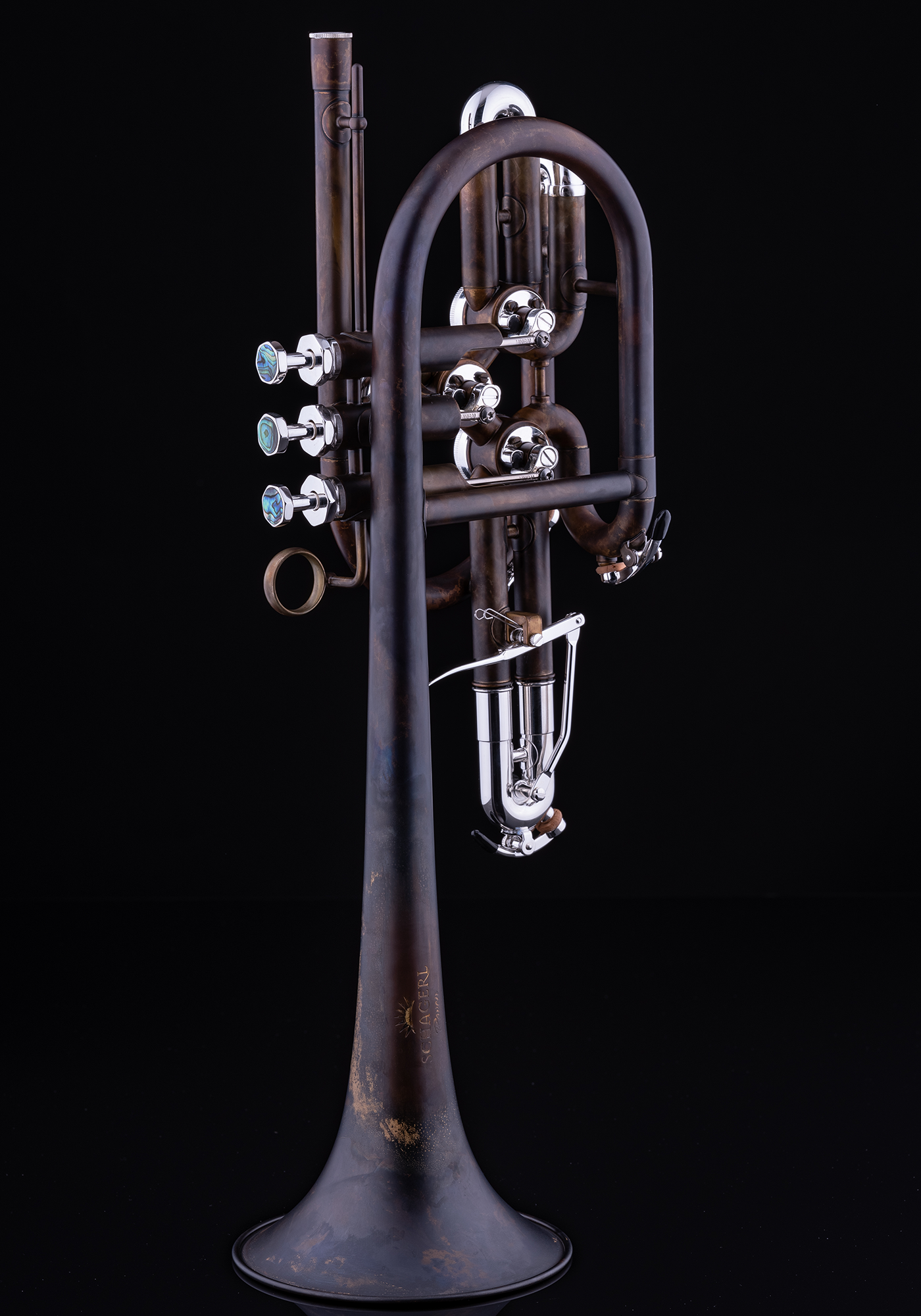 Die Raweni zeichnet sich durch ihr kompaktes Erscheinungsbild aus, das durch die tiefer liegenden Ventile entsteht. Trotz dieser äußeren Merkmale bleibt sie im Kern eine vollwertige Trompete, die sich komfortabel mit einer Hand bedienen lässt - ideal für Musiker:innen, die beispielsweise gleichzeitig dirigieren, mit Dämpfer spielen oder ein weiteres Instrument verwenden möchten.