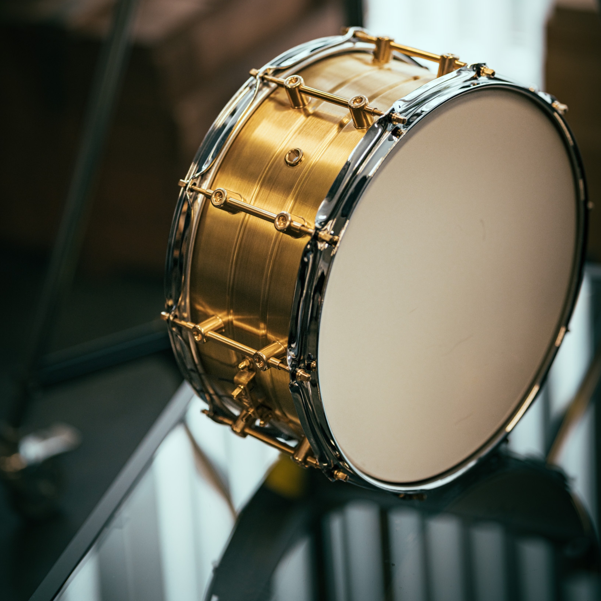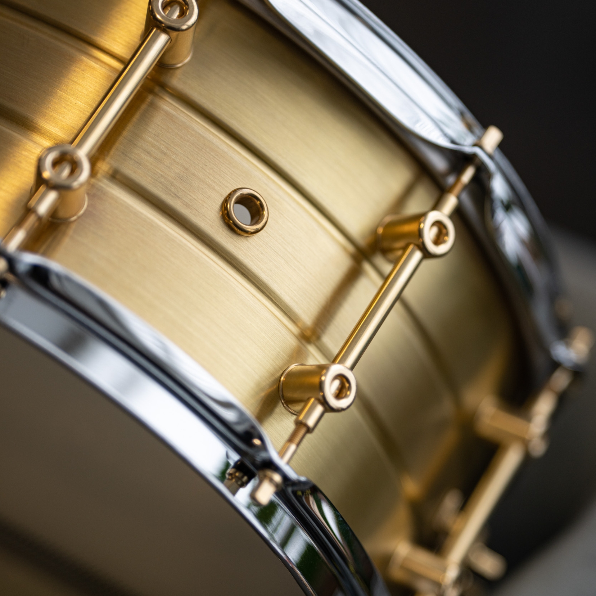 The Schagerl Beaver Snare 14"x6.5" combines classic brass sound with modern construction and a distinctive design. The 0.8 mm thick brass shell with two reinforcement beads delivers a focused, warm tone with controlled sustain - ideal for both studio and live use.