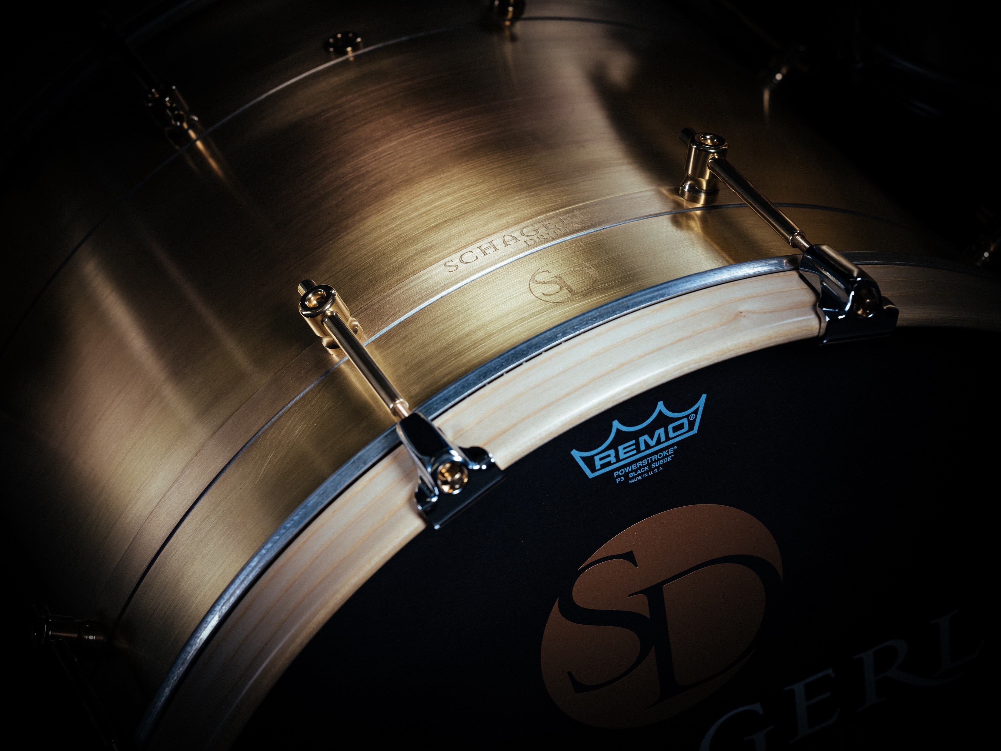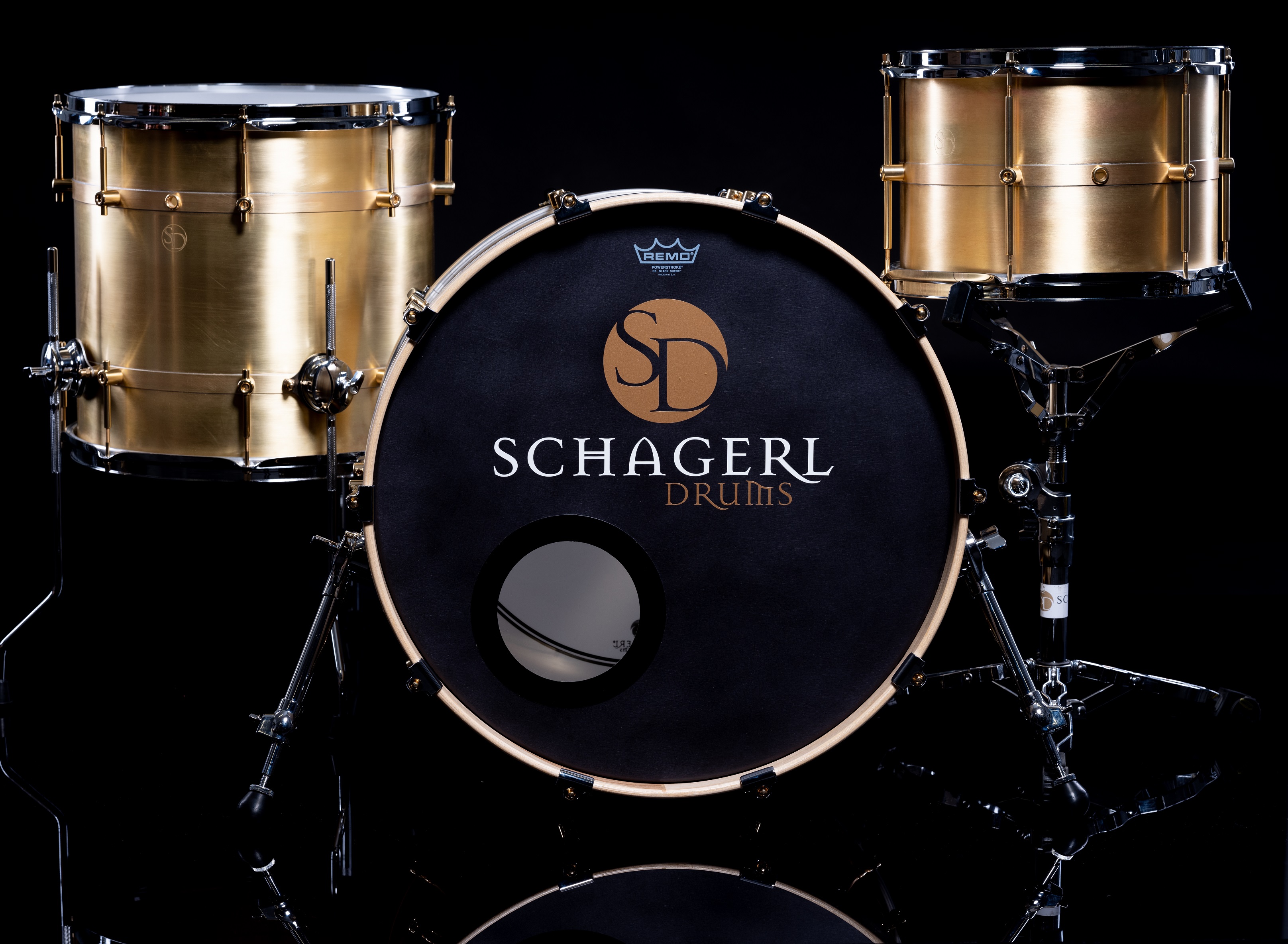 This 3-piece Schagerl Drum Kit 22/16/13 RAW / Chrome from the exclusive Schagerl Brass Series impresses with its uncompromising sound, striking design and perfect craftsmanship - made in Austria.