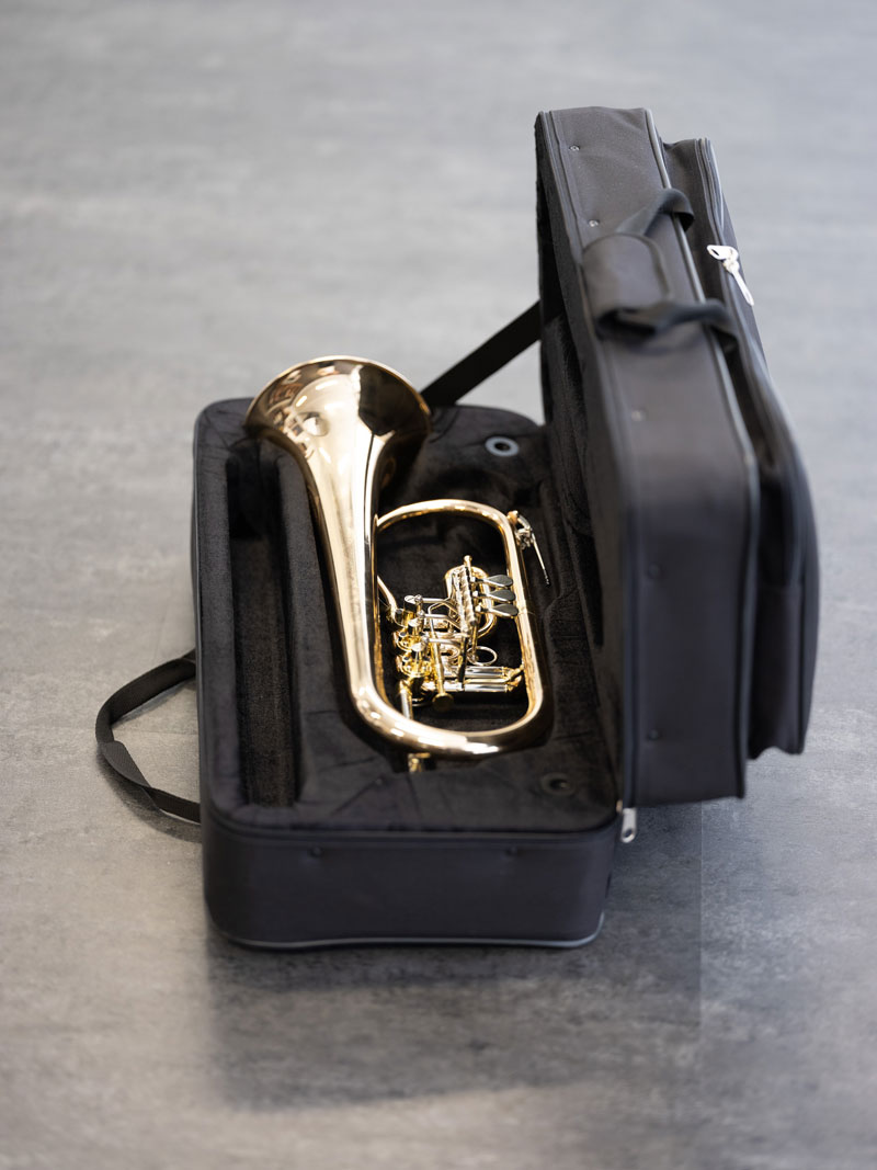 Our case for rotary valve flugelhorn with rucksack set offers first-class protection and a high level of comfort for your instrument. The soft velvet lining protects the sensitive surface of your flugelhorn from scratches and knocks. In addition, the custom-fit interior with space for accessories ensures that everything is stored safely and neatly.