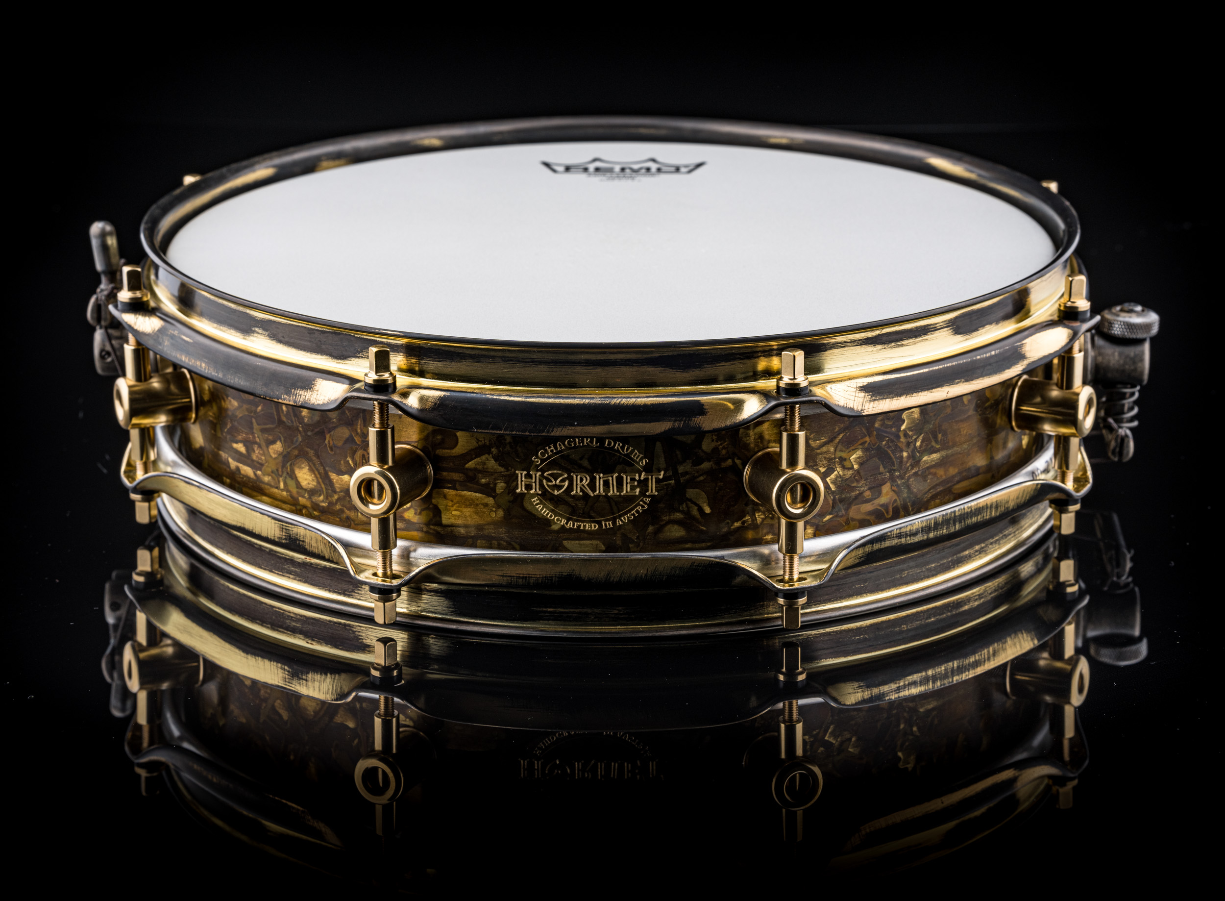 Schagerl Drums is a well-known name in the drumming industry, and the Hornet is just one more example of their commitment to excellence. Whether you’re a beginner or a professional, this snare drum is sure to impress. So upgrade your kit today and experience the incredible sound of the Hornet!The purely handcrafted free-swinging drums made of non-ferrous metals such as brass or copper are characterized by impressive sound transmission and development without any loss of power. Whether in the studio or live - in every (room) situation, the presence of this special drum impresses with a warm, defined character. The innovative concept of a vibrant design not only makes the difference audible compared to alternative drums, but also unique due to the special sound spectrum. -