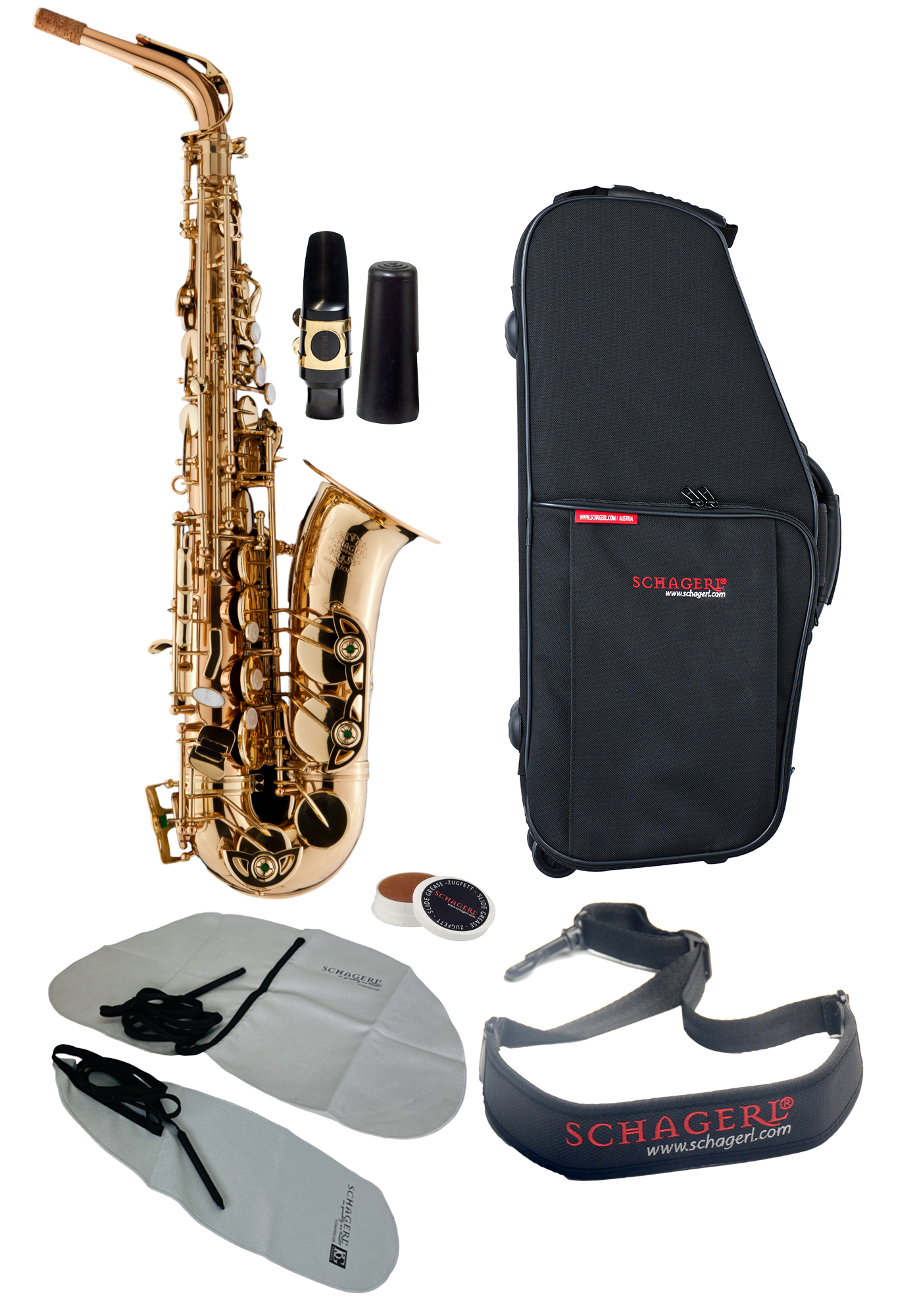 A saxophone that meets the highest standards - ideal for lessons, stage performances and demanding gigs.Body Goldbrass, with engraving Specification High-F#-Key, Metal thumb holder, Double supports for the deep keys Finish lacquerd Accessories Superior trekking case, Schagerl mouthpiece, neck strap, cork grease & cleaning cloth -