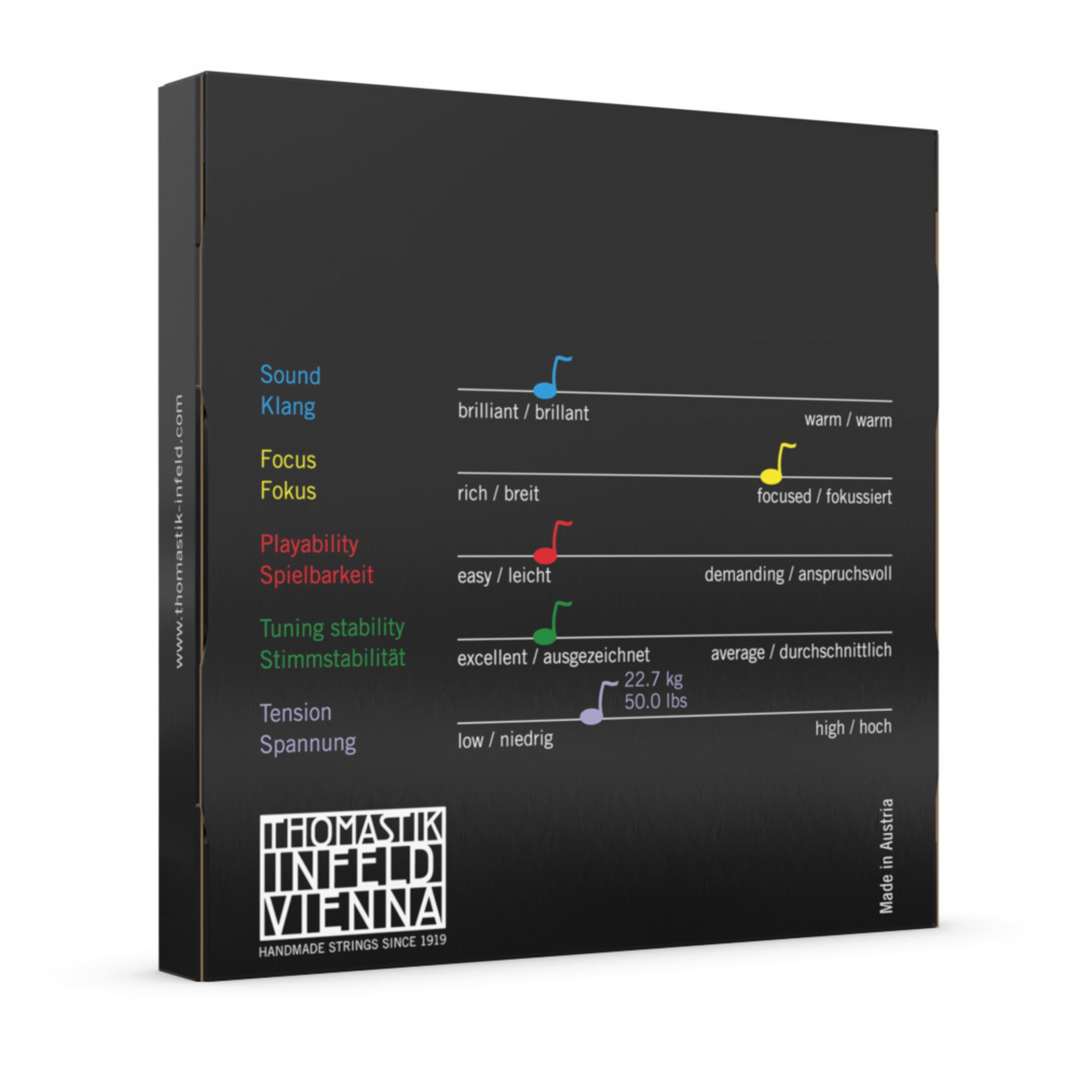 Thomastik-Infeld is a renowned manufacturer of high-quality strings for various musical instruments, including violin, viola, cello, double bass, guitar, and more. Since 1919, the company has been developing and producing strings in Vienna, offering a wide range of tonal qualities and playing experiences. Thomastik-Infelds philosophy is to meet the needs of musicians while also providing inspiration: developing the most advanced, reliable, and sonically rich products.