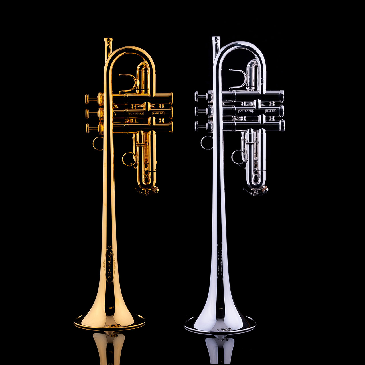 - Das Model "1961", entwickelt mit Prof. Jack Burt, Ziel dieser Zusammenarbeit war es, eine Trompete zu schaffen, die den klaren und konzentrierten amerikanischen Stil mit der nötigen Flexibilität vereint. Das Ergebnis ist eine Trompete, die keine Wünsche offenlässt. Sie besticht durch ihren brillanten, warmen und weittragenden Klang. Besonders wertvoll ist in diesem Zusammenhang auch die künstlerische Arbeit von Schagerl-Artist Hans Petter Stangnes. Dank seiner musikalischen Erfahrung und Expertise fließen wertvolle Impulse in die stetige Weiterentwicklung und Interpretation der Schagerl-Instrumente ein.