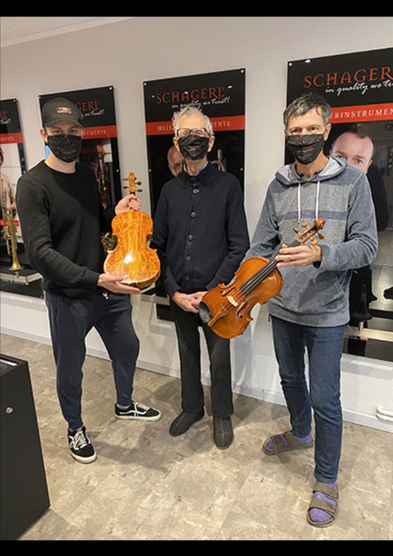 Wie es vielleicht eher weniger bekannt ist, war das Musikhaus Schagerl, insbesondere durch meinen Großvater Karl Schagerl Sen. und meinen Vater Johann Schagerl, früher auch in der Fertigung von Streichinstrumenten tätig. Neben zahlreichen Violinen, Kontrabässen und sogar zwei barocken Gamben, stechen aber speziell diese beiden Bratschen aus dem Jahr 1990 hervor. Die Maße für die Instrumente wurden davor von meinen Großvater persönlich und per Hand von der „Macdonald“ genannten Bratsche von Antonio Stradivari entnommen, da er damals den Besitzer dieser, den Bratschisten des weltberühmten Amadeus-Quartetts, Peter Schidlof, kannte. Mein Vater fertigte in den Jahren danach die beiden exzellenten und wunderschönen Nachbauten an, wobei er sich bei einer für einen Boden und Zargen aus Pappel, statt aus Ahorn entschied, welches mich sowohl tonlich als auch optisch noch mehr begeistert. Peter Schidlof konnte die Bratschen persönlich nicht mehr anspielen oder vergleichen, da er leider im Jahre 1987 plötzlich verstarb. Das Stradivarius-Original aus 1701 ist heute am Markt für 45 Millionen US-Dollar erhältlich. Unsere Nachbauten aber werden hoffentlich noch für Generationen als Familienstück erhalten bleiben.