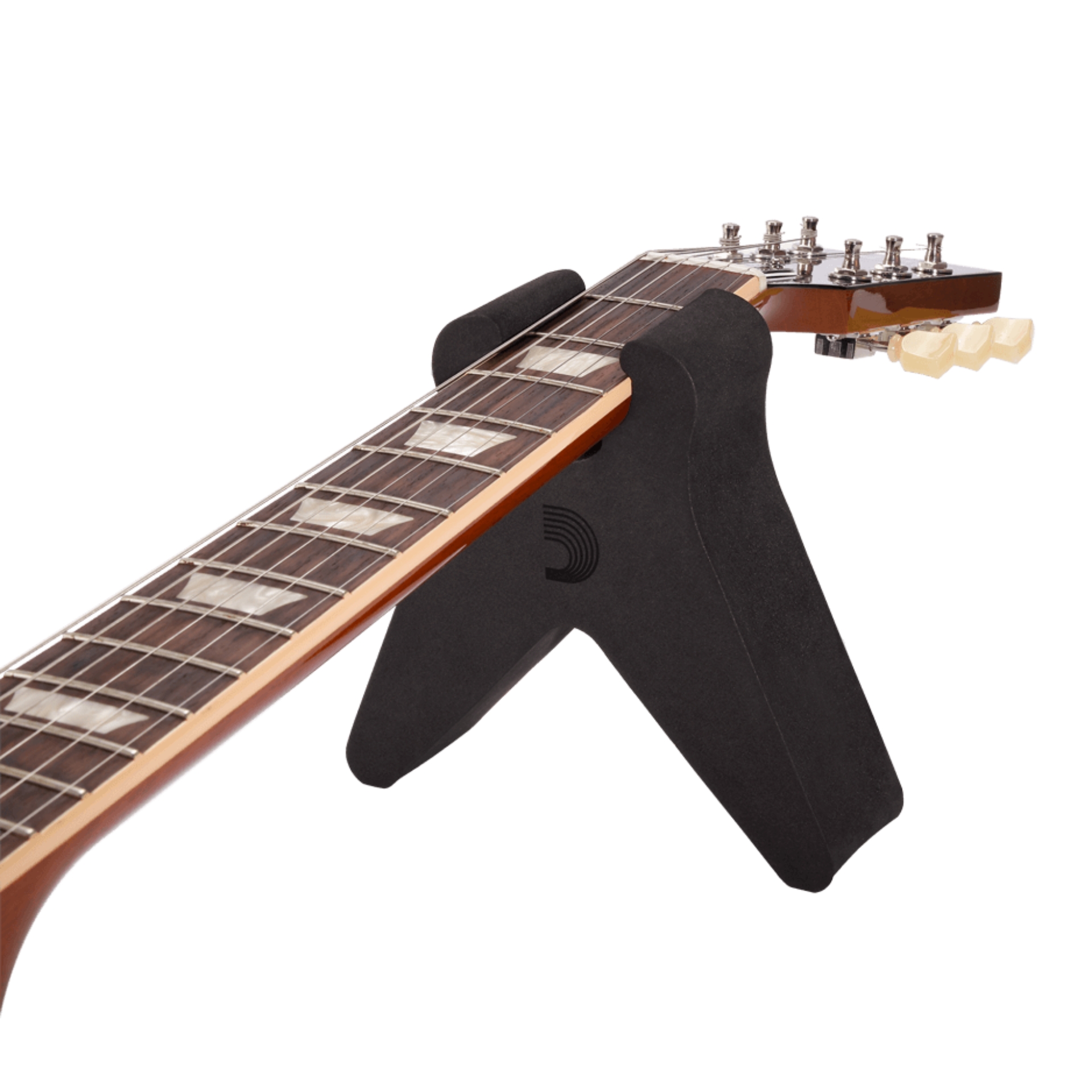 Der D’Addario Gitarrenhals-Schutz/Ständer ist eine praktische Instrumentenauflage, die jede ebene Fläche sofort in eine sichere Ablage für Gitarren und andere Saiteninstrumente verwandelt. Die spezielle Form ermöglicht es, den Instrumentenhals stabil zu lagern, wodurch das Instrument beim Ablegen, bei Einstellungen oder beim Saitenwechsel gestützt wird. Das verwendete Material ist vollständig inert und greift Lackierungen oder empfindliche Oberflächen von Instrumenten nicht an. Die Auflage passt zu einer Vielzahl von Instrumentenhälsen und eignet sich für Gitarren, Bässe sowie andere Saiteninstrumente. Sie kann auf unterschiedlichen ebenen Flächen wie Tischen, Koffern, Studiomöbeln oder anderen stabilen Untergründen verwendet werden und schafft überall schnell einen sicheren Platz zum Ablegen des Instruments.