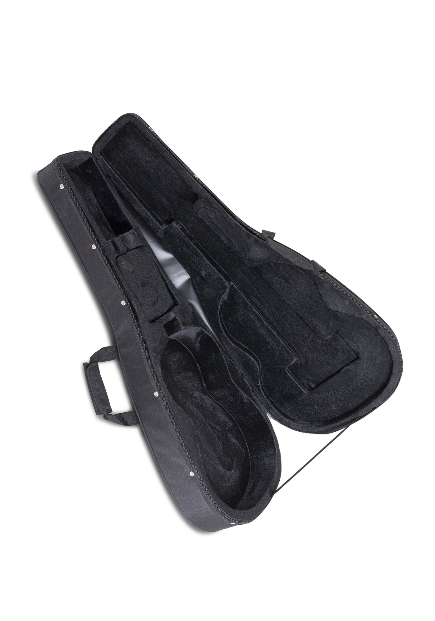 Der Gewa Konzertgitarrenkoffer FX Light weight Softcase vereint die Leichtigkeit eines Softcases mit der Stabilität eines Koffers. Dank geschäumtem Styroporkern und zusätzlicher Sperrholzverstärkung an Decke und Boden bietet es deutlich mehr Schutz als herkömmliche Etuis dieser Art. Der schwarze Nylonüberzug mit Stoßkanten sorgt für Langlebigkeit, während die gepolsterte Rucksackgarnitur mit Metallkarabinern komfortables Tragen ermöglicht. Ein Zubehörfach und eine große Notentasche mit Zarge sorgen für ausreichen Platz für Noten und Zubehör.