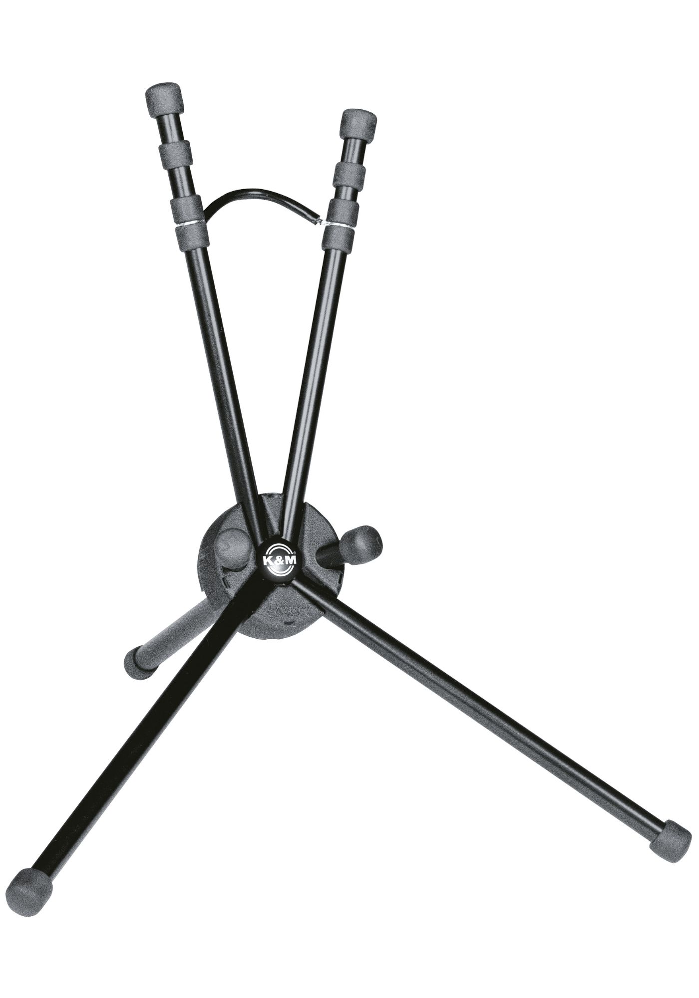 Der extrem kompakte Saxophonständer Saxxy bietet sicheren Halt für Es-Alt-Saxophone. Das Besondere: Der zusammengefaltete Ständer lässt sich im mitgelieferten Veloursbeutel direkt im Schalltrichter des Saxophons verstauen und transportieren.