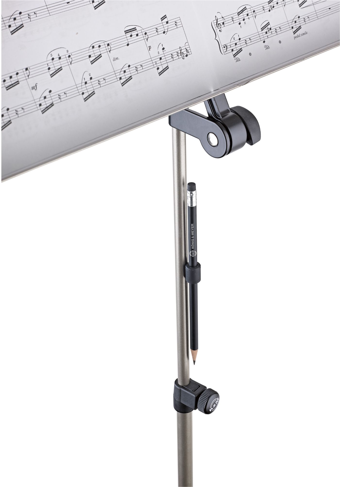Der praktische Bleistift mit Haltemagnet besitzt eine extreme Haftkraft und hält an allen Notenpulten und Orchesterpulten mit magnetischer Oberfläche. Er ist geeignet für Bleistifte mit einem Durchmesser von 6 bis 7,5 mm.