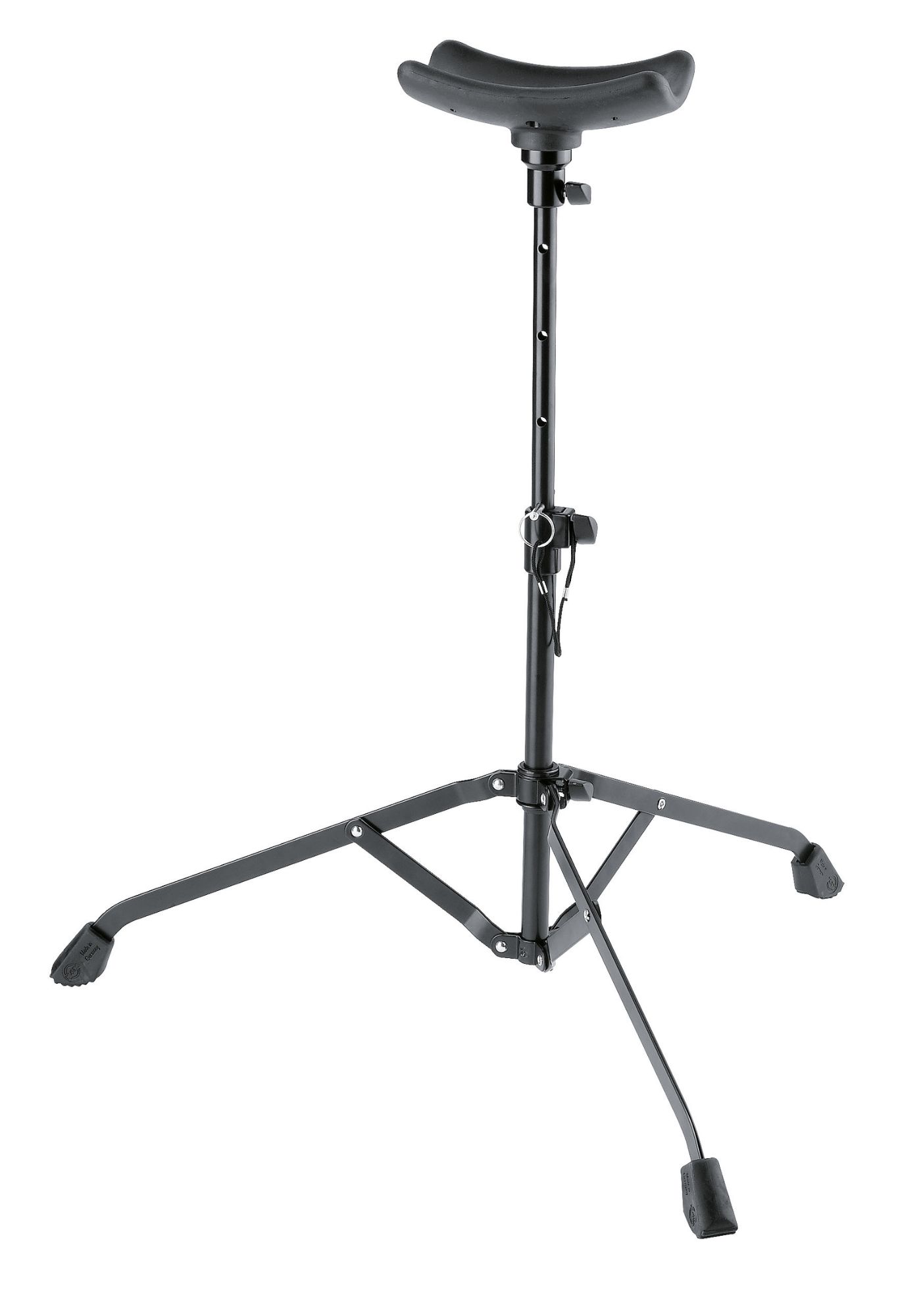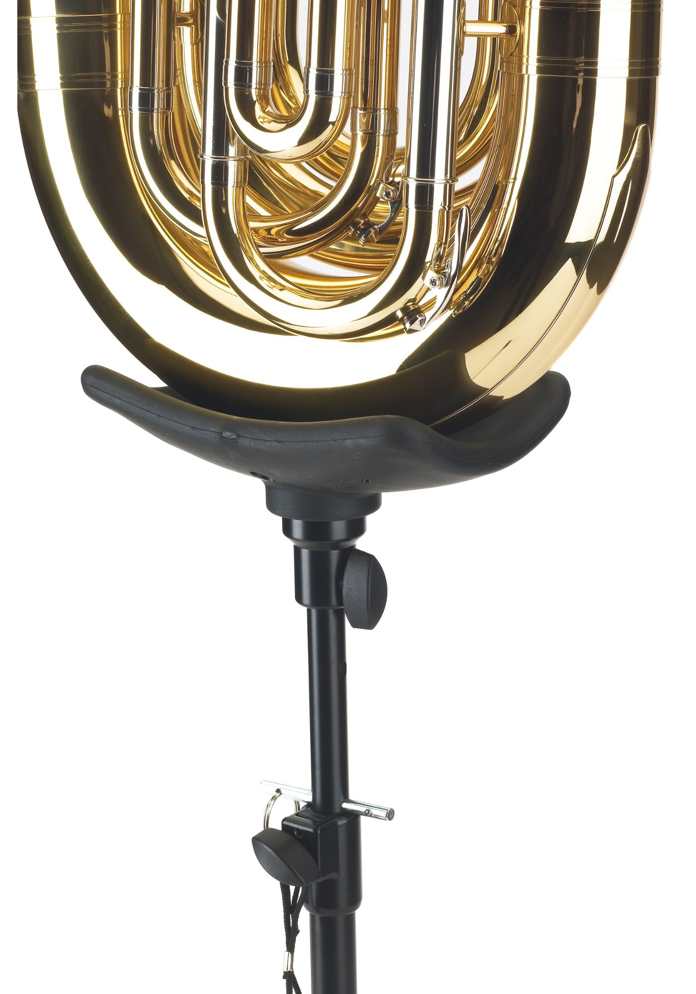 Für alle Tuben geeignet. Der Ständer verfügt über eine breite, zusammenlegbare Fußkonstruktion und eine höhenverstellbare Rohrkombination. Die gummigepolsterte Instrumentenauflageschale bietet zusätzlichen Schutz und besitzt eine Aussparung für Instrumente mit Kamm.
