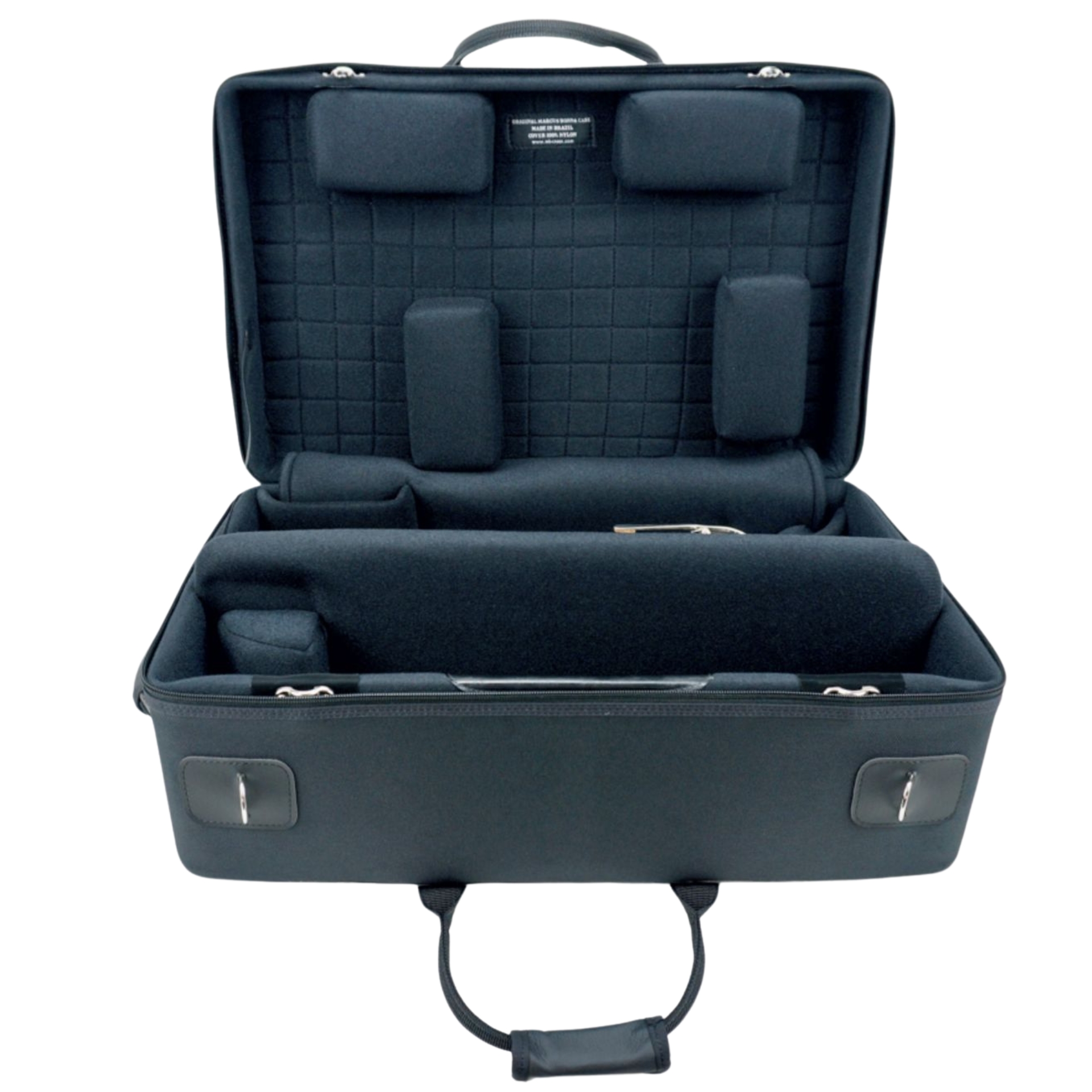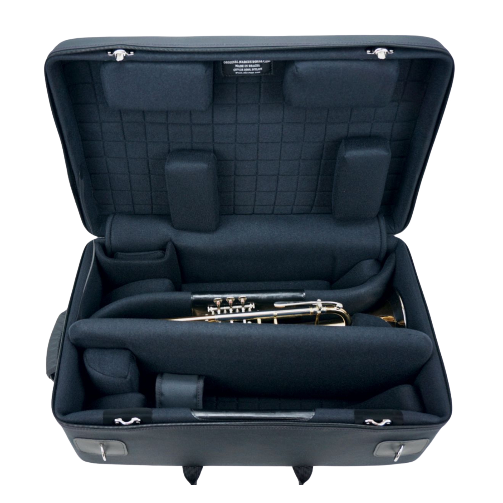 Dieses Modell bietet Platz für bis zu drei Drehventiltrompeten, gestimmt in Bb, C, D, Es oder F, sowie für eine Piccolotrompete oder ein Kornett. Alternativ kann es auch eine Kombination aus einer Trompete und einem Flügelhorn sicher verstauen.
