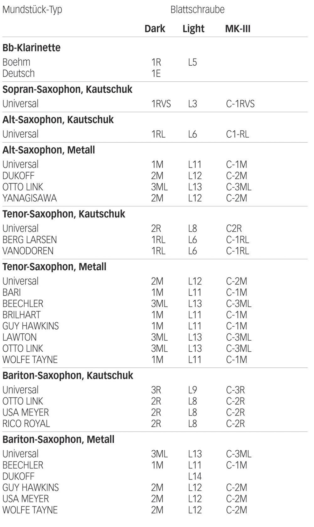 Rovner Dark "1RVS" passend für folgende Mundstücke: