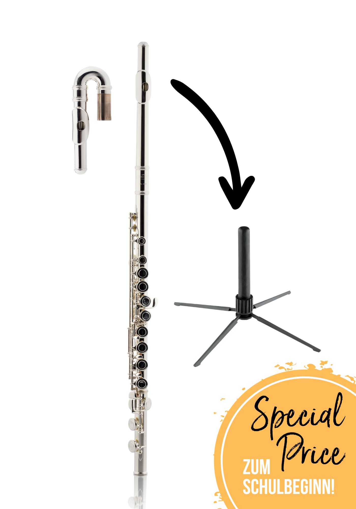 Die Schagerl Querflöte FL-901U bieten die Möglichkeit, zwischen einem geraden und einem gebogenen Kopfstück zu wechseln, was Flexibilität für verschiedene Spielerbedürfnisse bietet.Stimmung C Ausführung mit gebogenem & geradem Kopfstück Mechanik geschlossene Klappen Korpus gezogene und gebördelte Tonlöcher Besonderheit vorgezogenes G Oberfläche versilbert Zubehör Etui mit Tragtasche, Putzstab, Reinigungstuch für innen, Poliertuch für außen, Silberputztuch Entdecken Sie die Schagerl ACADEMICA Instrumente: Der perfekte Begleiter für junge Musiker. Mit einer Auswahl, die von Einsteigermodellen bis hin zu fortgeschrittenen Instrumenten reicht, bietet Schagerl für jede Phase der musikalischen Entwicklung das passende Instrument.