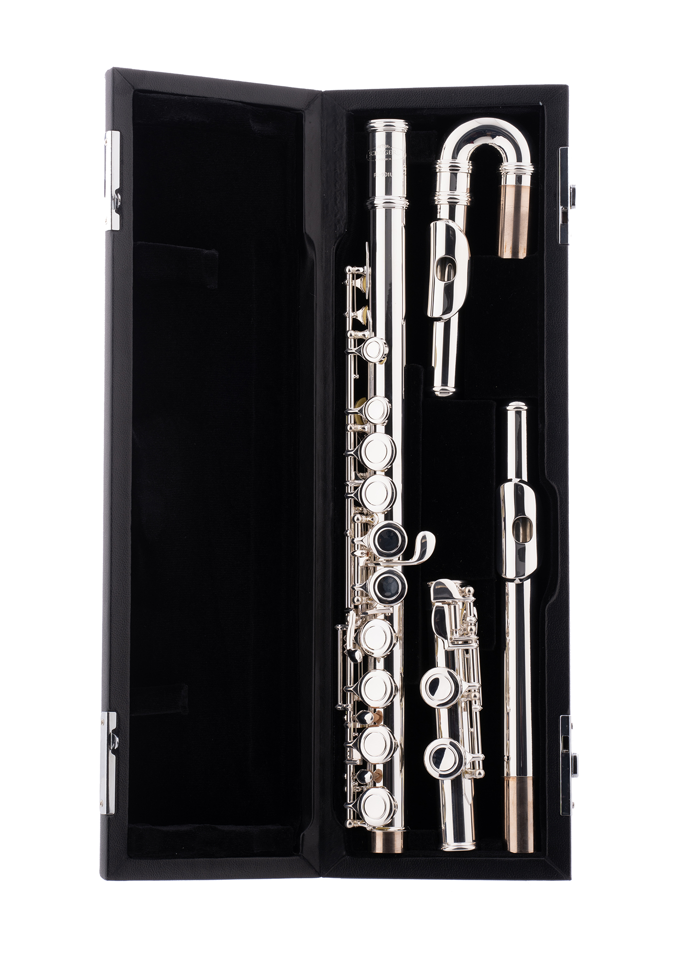 Das gebogene Kopfstück verkürzt den Abstand zwischen dem Mundstück und den Klappen der Flöte, wodurch das Instrument für kleinere Spieler bequemer und ergonomischer zu halten ist. Dies reduziert die Belastung von Armen, Schultern und Rücken.