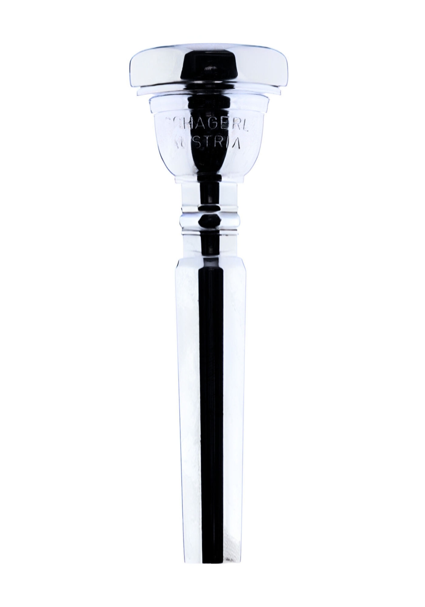 Das Schagerl-Austria Trompetenmundstück G4 versilbert überzeugt mit einem geringen Kesselvolumen, das das Spiel in hohen Lagen optimal unterstützt. Es eignet sich hervorragend für Jazz und Unterhaltungsmusik und wird besonders gerne von Lead-Trompetern verwendet.