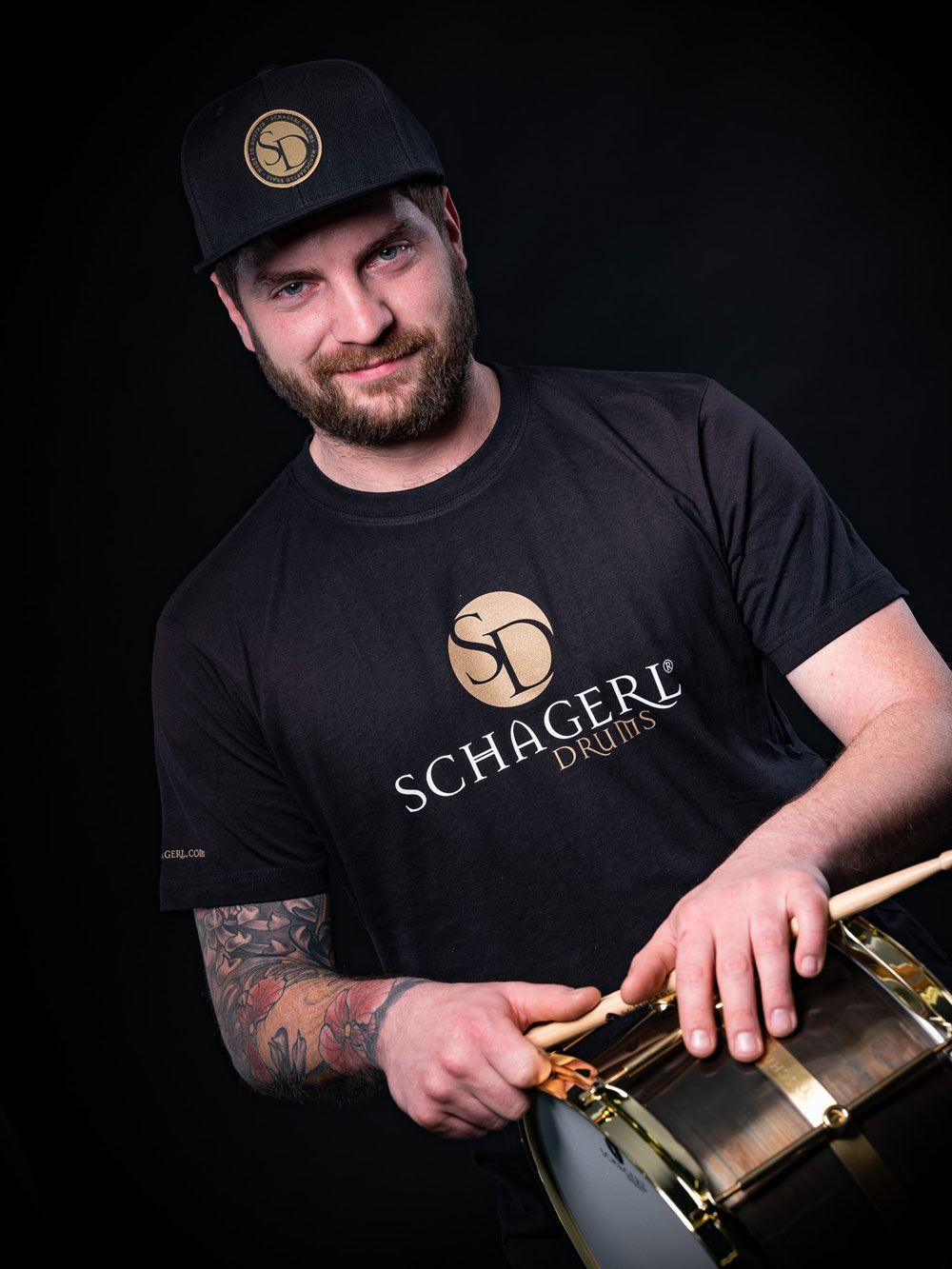 Das formschöne schwarze T-Shirt mit goldenem Schagerl Drums Logo kombiniert stilvolles Design mit hohem Tragekomfort. Gefertigt aus 100% hochwertiger Baumwolle bietet der weiche Stoff eine angenehme Passform. Das edle goldene Logo auf der Vorderseite setzt einen besonderen Akzent und macht das T-Shirt zum idealen Begleiter für Musikliebhaber. Es ist bei 30 °C waschbar und bügelbar, wodurch es pflegeleicht und perfekt für den Alltag geeignet ist.Die Schagerl Music GmbH verbindet traditionelles Handwerk mit modernem Online-Handel. Unser 1961 gegründetes Familienunternehmen hat sich, unter der Leitung von Karl Schagerl in zweiter Generation, zu einem weltweit renommierten Hersteller von Blech- und Schlaginstrumenten entwickelt.
