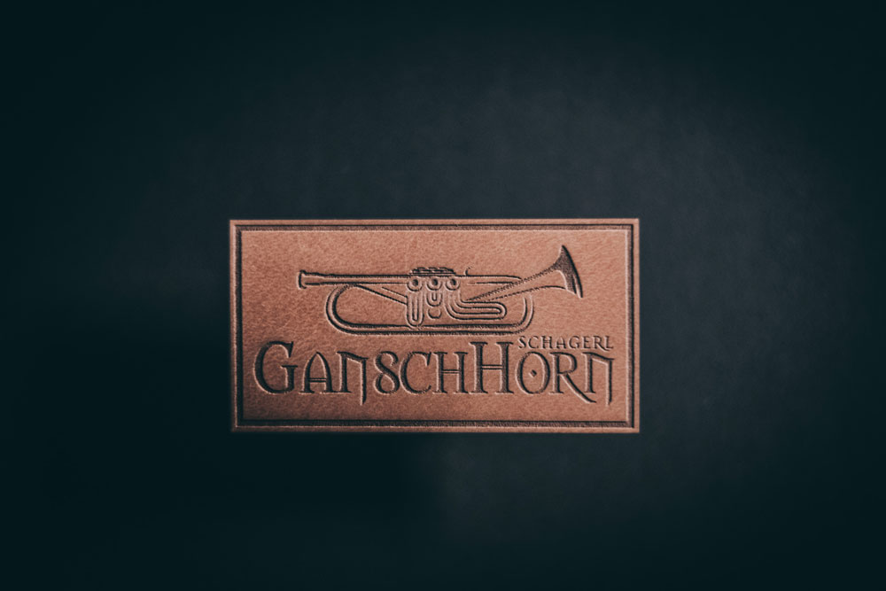 Schagerl Gansch Horn Aufnäher Kunstleder, braun
