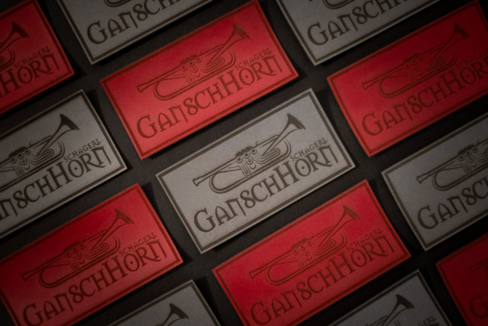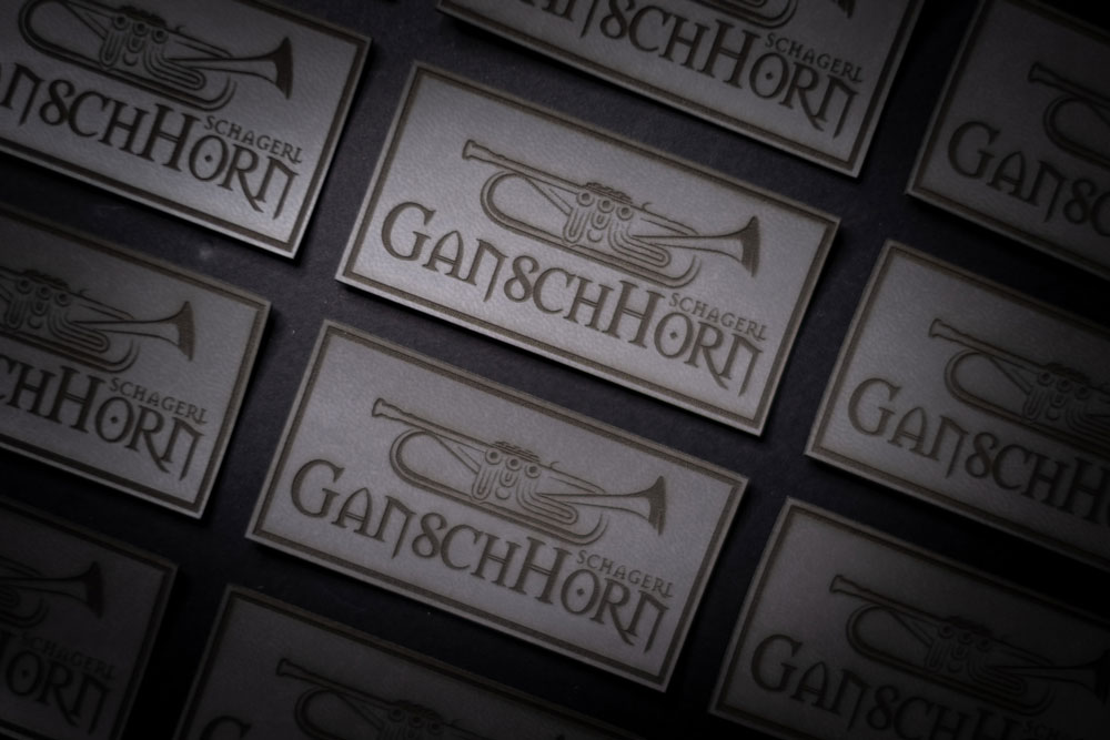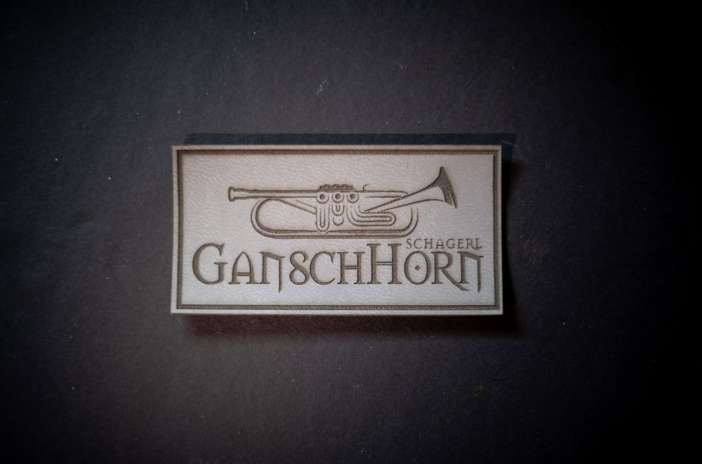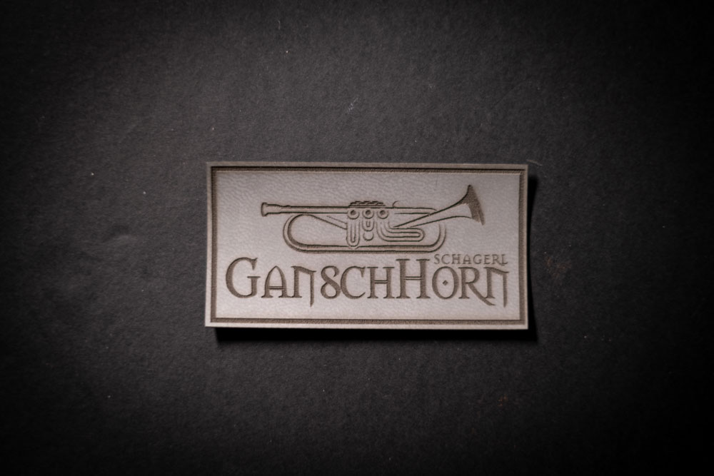 Schagerl Gansch Horn Aufnäher Kunstleder, grau