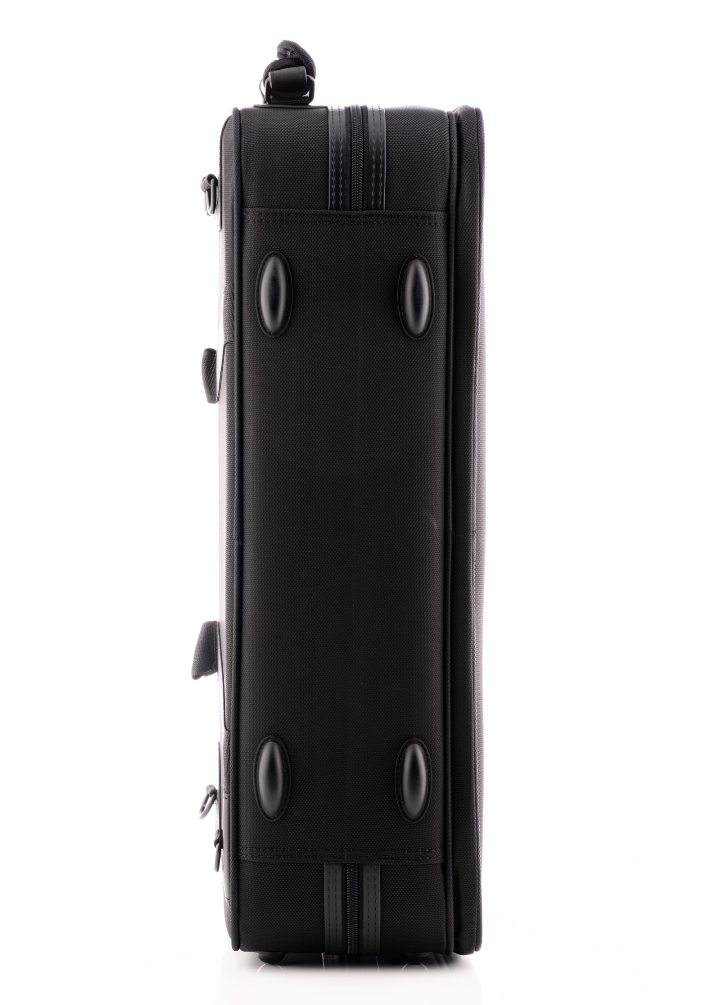 Das Case verfügt über einen seitlichen und oberen Haltegriff sowie zwei abnehmbare Rucksackriemen, die mit stabilen Metallkarabinern und lederverstärkten Halterungen ausgestattet sind. Diese Details garantieren höchsten Tragekomfort und eine lange Lebensdauer - ideal für den täglichen Gebrauch.