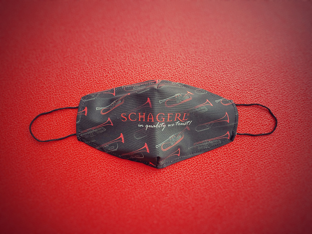 Diese stilvolle Stoffmaske mit Gummizug überzeugt durch ihr hochwertiges Design und die klare Botschaft für Musikliebhaber. Bedruckt mit dem Schagerl Logo und verschiedenen Instrumentenmotiven, ist sie nicht nur ein funktionaler, sondern auch ein modischer Begleiter. Die Gesichtsmaske ist waschbar bis 60°C und somit mehrfach verwendbar, was sie besonders nachhaltig macht. Dank des elastischen Gummizugs sitzt sie angenehm und sicher am Gesicht, ideal für den Alltag, Proben oder unterwegs. Perfekt für alle, die Musik im Herzen tragen und auch beim Schutz auf Qualität und Stil setzen.Die Schagerl Music GmbH verbindet traditionelles Handwerk mit modernem Online-Handel. Unser 1961 gegründetes Familienunternehmen hat sich, unter der Leitung von Karl Schagerl in zweiter Generation, zu einem weltweit renommierten Hersteller von Blech- und Schlaginstrumenten entwickelt.