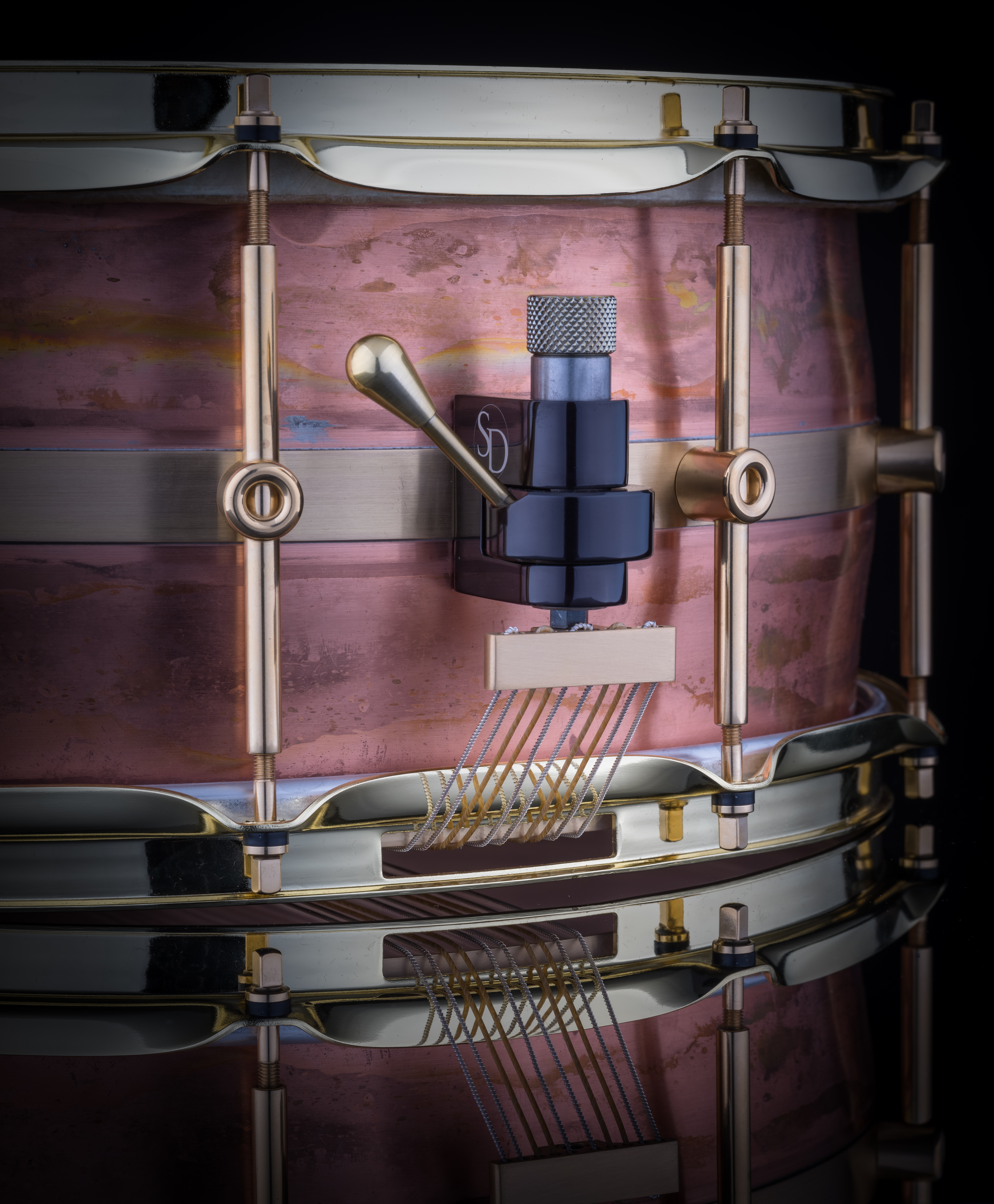 Persephone ist der griechischen Namensgeberin in jeder Hinsicht würdig. Der patentierte Schagerl Kupfer-Trommelkessel besteht aus 5 Teilen, hat ein konvexes Design und erzeugt somit einen Pauken-ähnlichen-Effekt mit bemerkenswerter Resonanz, während der Sound leicht kontrollierbar bleibt. Die Schagerl-modifizierte Trick Drums Multistep Abhebung ermöglicht eine präzise Snare Teppich Einstellung. Die akustisch neutrale Natur der Trommel macht sie zu einer idealen Studiotrommel.