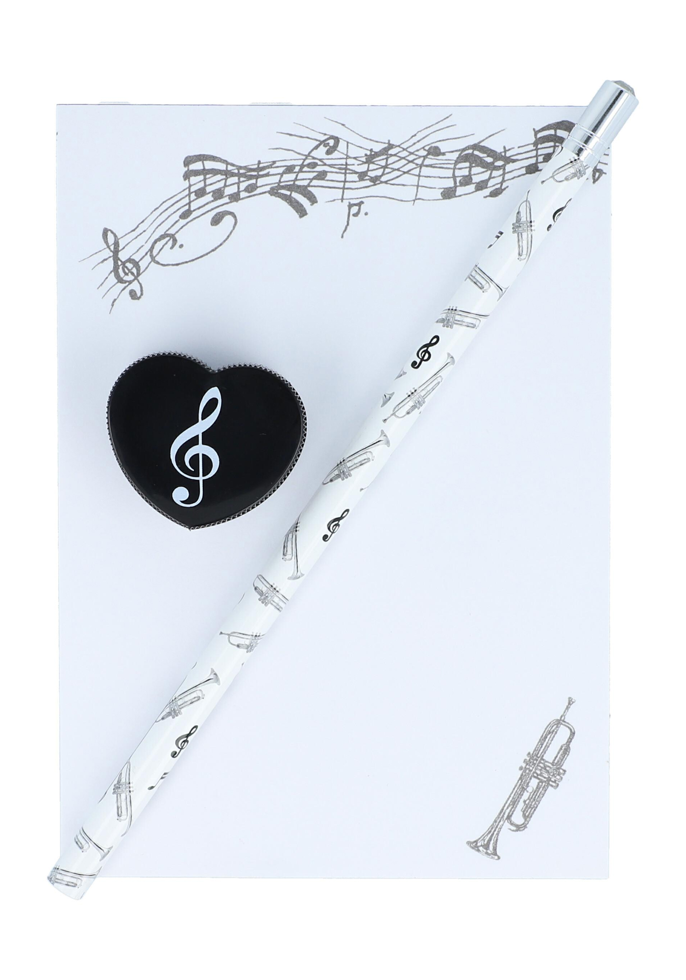 Schreibset Trompete - Bleistift, Spitzer, A-6 Block