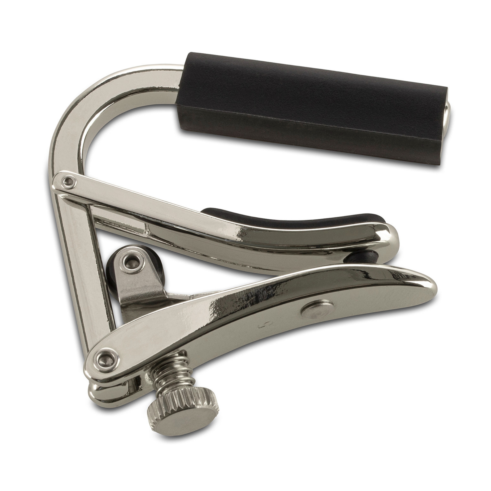 Der Shubb Kapodaster C5 ist für Banjo und Mandoline mit schmalem, gewölbtem Griffbrett entwickelt. Er bietet präzise Spannungsregelung, die die Stimmung erhält, und ist aus robustem Material wie Edelstahl gefertigt. Der C5 lässt sich leicht anbringen, bietet dank weicher Gummiauflage optimalen Halt und schont Saiten sowie Griffbrett. Perfekt für schnelle Tonartenwechsel.
