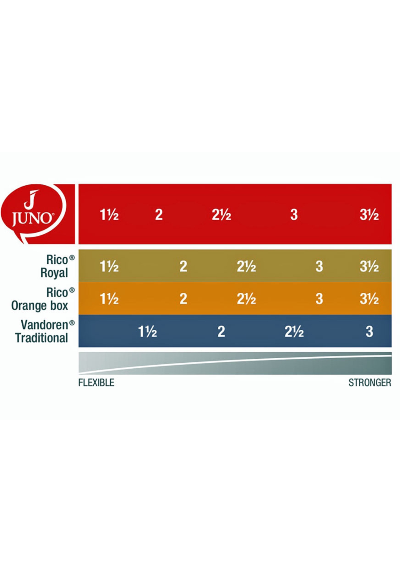 Die Vandoren Altsaxophonblätter Juno sind speziell für Anfänger entwickelt, die eine ausgewogene Mischung aus Flexibilität, Klangqualität und Benutzerfreundlichkeit suchen. Diese Blätter sind aus hochwertigem Schilfrohr gefertigt und bieten einen warmen, klaren Ton, der sich ideal für verschiedene Musikstile eignet. Die Juno-Serie zeichnet sich durch ihre gleichmäßige Dicke und hervorragende Ansprache aus, was das Spielen erleichtert und das Vertrauen in die Technik fördert. Dank ihrer zuverlässigen Qualität sind sie eine ausgezeichnete Wahl für Anfänger, die auf der Suche nach einer vielseitigen und klangvollen Option sind, um ihr Saxophonspiel zu entwickeln.Vandoren ist bekannt für seine hochwertigen Blätter, Mundstücke und Zubehör für Holzblasinstrumente. Ihre Blätter bieten exzellente Klangqualität und Konsistenz, während die Mundstücke durch präzise Ansprache und komfortable Handhabung überzeugen. Mit einer Vielzahl von Stärken und Modellen erfüllt Vandoren die Bedürfnisse von Musikern auf jedem Niveau und trägt zur optimalen Performance und Langlebigkeit der Instrumente bei.