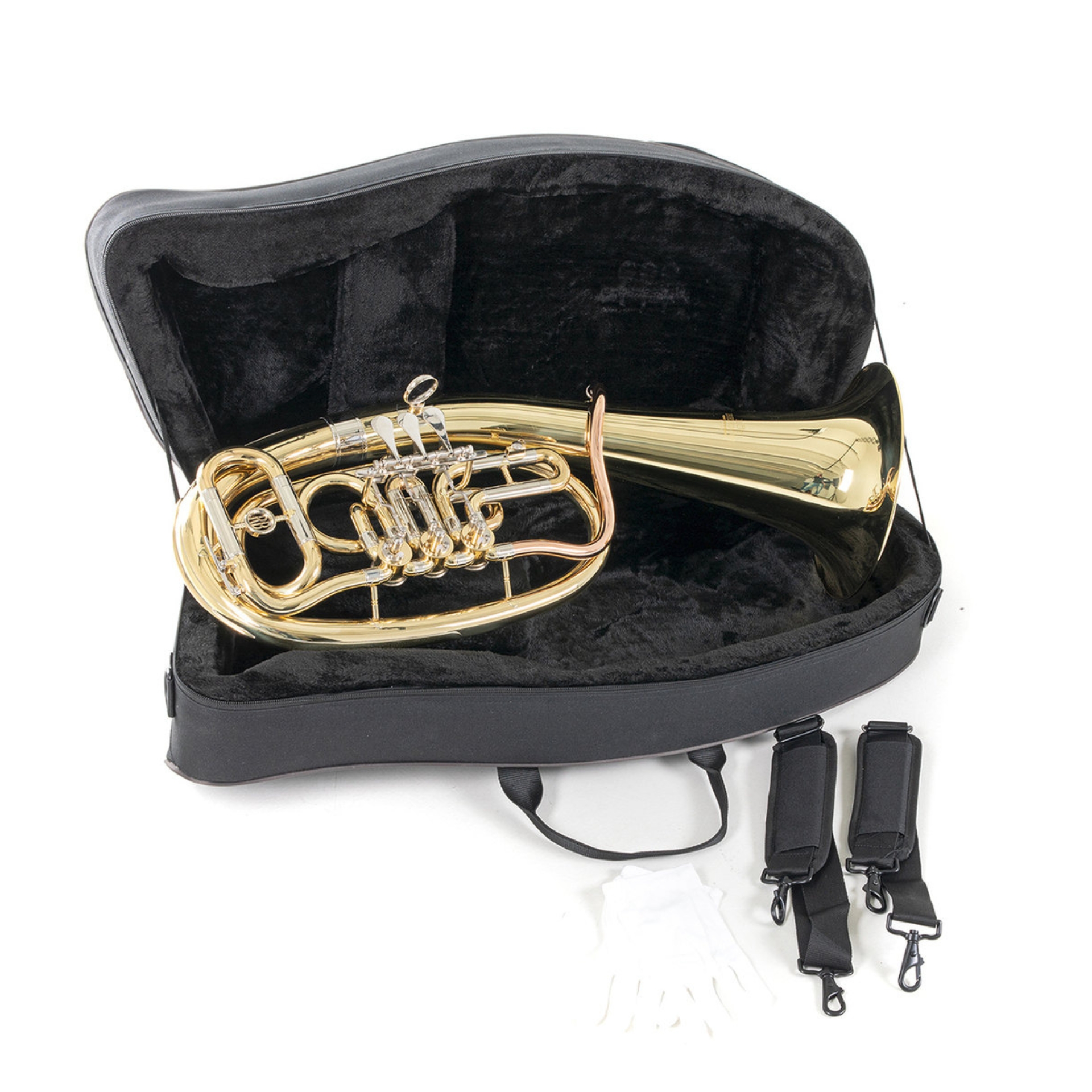 Ein perfektes Einstiegsinstrument für junge Talente!Stimmung Bb Schallbecher 24 cm Ventilstock 3 Zylinderventile mit Kugelgelenken Mundrohr Goldmessing Ausführung Korpus: Messing Oberfläche lackiert Zubehör inkl. Formetui mit Rucksackgarnitur, Mundstück, Ventilöl, Zugfett & Poliertuch