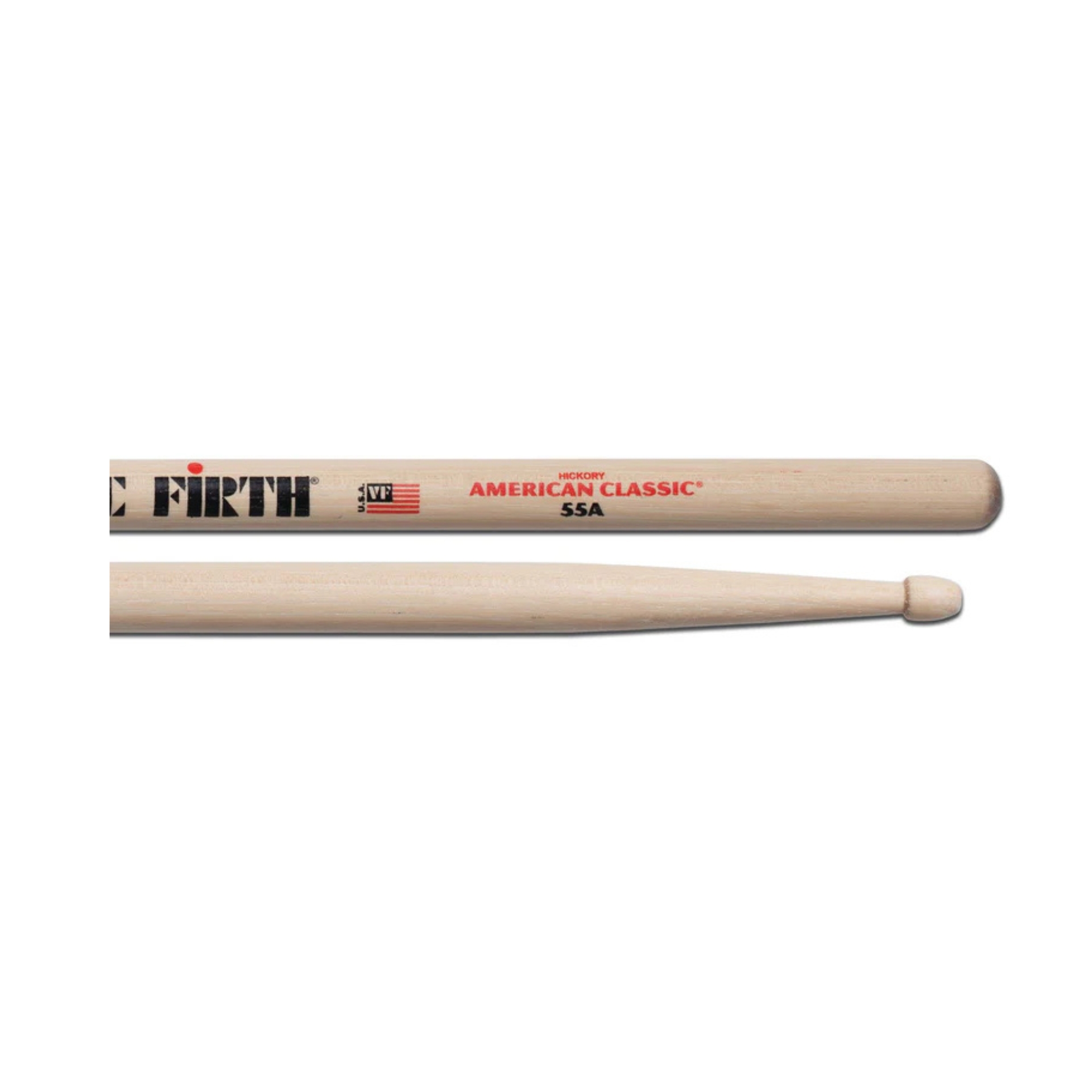 Die Vic Firth 55A American Classic Drumsticks liegen in der Stärke zwischen 5A und 5B - ideal für Drummer, denen 5B zu schwer ist. Hergestellt aus langlebigem Hickory-Holz, bieten sie mit ihrem mittleren Taper eine ausgewogene Balance zwischen Power und Kontrolle. Der tränenförmige Kopf sorgt für klaren Beckensound und vielseitige Spielbarkeit - perfekt für Allround-Einsätze.